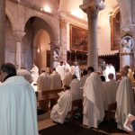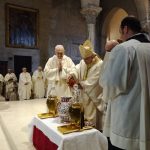 La S. Messa del crisma che stiamo celebrando, in cui viene consacrato il crisma e vengono benedetti gli altri oli, è la manifestazione della comunione dei presbiteri con il proprio vescovo nell’unico e medesimo sacerdozio e ministero di Cristo.