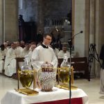 Il giovedì santo, nella mattinata, tutto il presbiterio della diocesi, con i fedeli, si è ritrovato unito al suo arcivescovo in cattedrale per la celebrazione della messa crismale una delle principali manifestazioni della pienezza del sacerdozio del Vescovo e un segno della stretta unione dei presbiteri con lui. La Messa crismale è quasi epifania della Chiesa, corpo di Cristo, organicamente strutturato, che nei vari ministeri e carismi esprime, per la grazia dello Spirito, i doni nuziali di Cristo alla sua sposa pellegrina nel mondo. La Messa crismale, rende ancor più evidente il clima di una vera festa del sacerdozio ministeriale all’interno di tutto il popolo sacerdotale e orienta l’attenzione verso il Cristo, il cui nome significa «consacrato per mezzo dell’unzione».