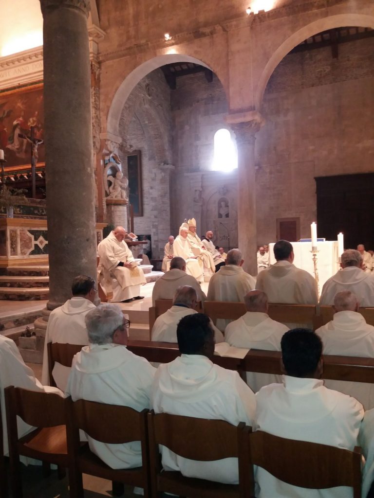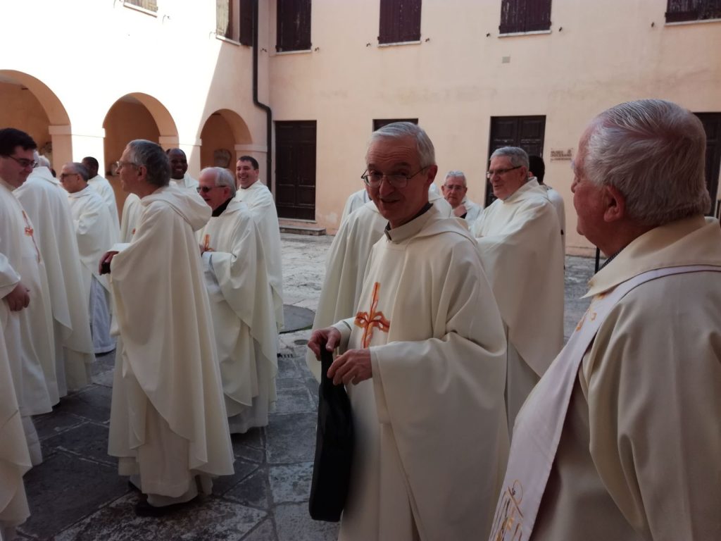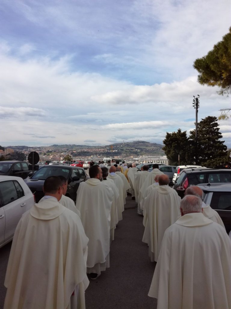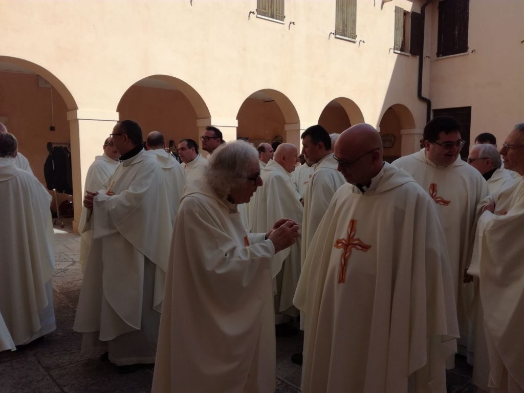 La S. Messa del crisma che stiamo celebrando, in cui viene consacrato il crisma e vengono benedetti gli altri oli, è la manifestazione della comunione dei presbiteri con il proprio vescovo nell’unico e medesimo sacerdozio e ministero di Cristo.