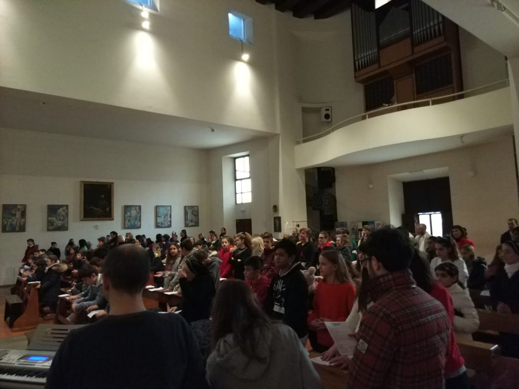 La comunità scolastica della Scuola Maestre Pie Venerini di Ancona si è riunita stamattina alla presenza del Vescovo S. E. Mons. Angelo Spina presso la chiesa di S. Cosma e Damiano per scambiarsi gli auguri per il Santo Natale e per riflettere insieme su quanto di più significativo porta con sé questa importante festa.