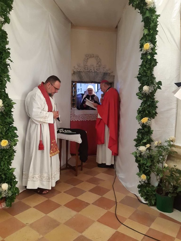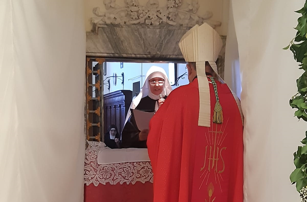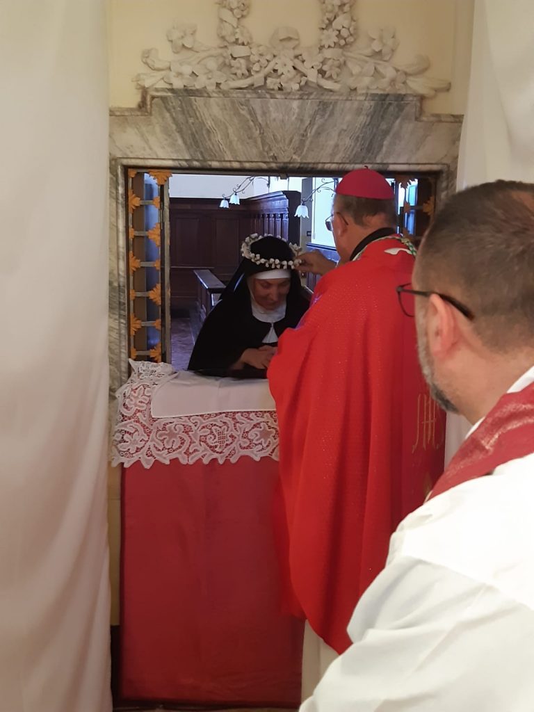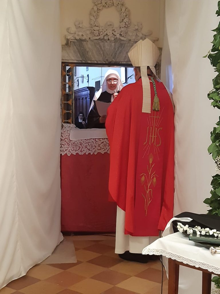 Nella cappella del monastero delle Monache Clarisse Urbaniste di Osimo si è tenuta la celebrazione eucaristica presieduta dall’arcivescovo Angelo durante la quale Suor Maria Gemma Pia ha fatto la professione religiosa, alla presenza della mamma e delle sorelle. Presenti alla celebrazione P. Giancarlo Corsini, cappellano delle monache, P. Roberto cappuccino, P. Laurent, P. Jean Marie. E’ giunta dal comune di Pula (CA) una delegazione con il sindaco dottoressa Carla Madau. Tante persone hanno assistito al momento in cui Suor Maria Gemma Pia ha fatto la professione religiosa davanti all’Arcivescovo, alla Madre Badessa e a tutti i presenti prendendo l’impegno a vivere la Regola, in obbedienza, povertà e castità. Gli è stato consegnato il velo, il libro della Regola e la corona con i fiori ad indicare il suo rapporto sponsale con Cristo.
