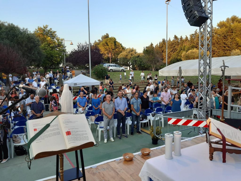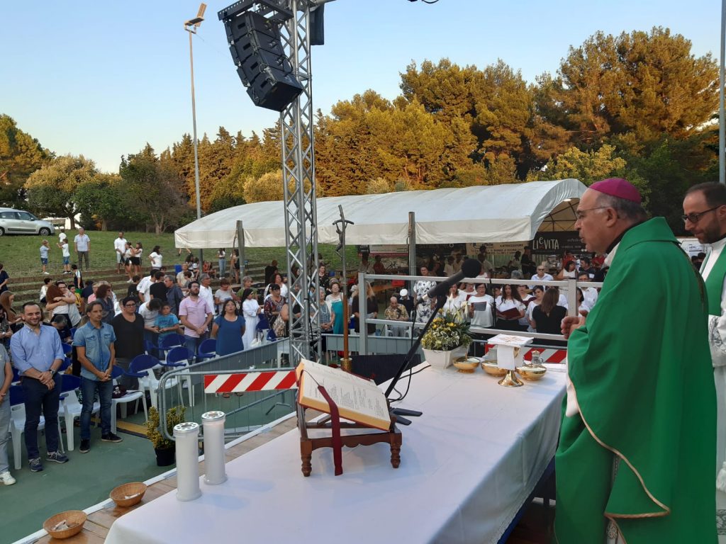 Tante le persone che hanno partecipato alla S. Messa presieduta dall’arcivescovo Angelo, nel parco della repubblica a Sirolo, in occasione delle giornate proposte da Fidesvita dal titolo “l’avvenimento in piazza”.