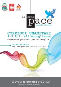 Il primo incontro, in collaborazione con la Pastorale Familiare, si terrà giovedì 16 gennaio 2020 alle 21:00, presso il Teatrino della Parrocchia Ss. Cosma e Damiano ad Ancona (Google Maps), sul tema “Corridoi Umanitari – A.P.R.I all’accoglienza – Esperienze possibili per le famiglie” (il tema è legato all’ingresso sicuro di famiglie in fuga da guerre, persecuzioni, campi profughi in Africa e medio Oriente); con la partecipazione di Caterina Boca dell’Ufficio Immigrazione di Caritas Italiana.