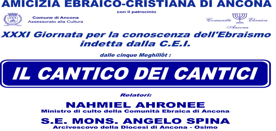Nella XXXI giornata per la conoscenza dell’ebraismo indetta dalla CEI, approfondimento e riflessione sul Cantico dei Cantici con Nahmiel Ahronee, Ministro del culto e Mons. Angelo Spina, Arcivescovo dell’Arcidiocesi di Ancona Osimo.