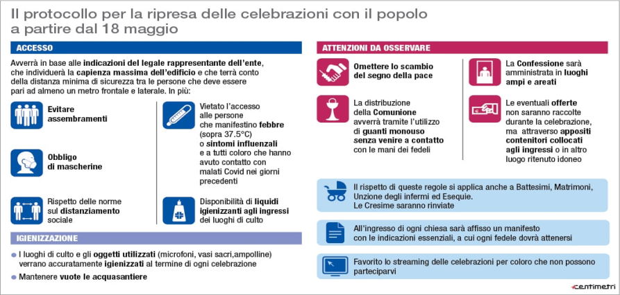 NO_categoria 9 Maggio 2020 admindiocesi Il protocollo per la ripresa delle celebrazioni con il popolo dal 18 maggio CONDIVIDIemailPrintFacebookTwitter