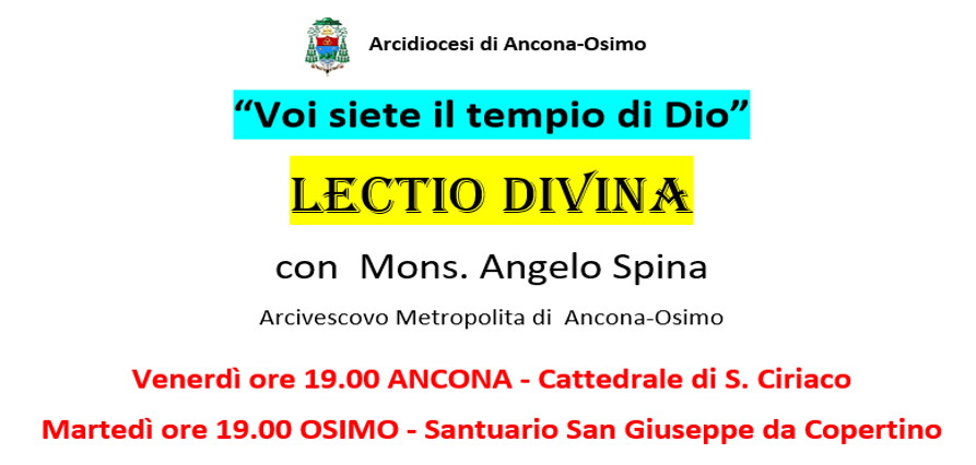 Da Martedì 23 febbraio iniziano le lectio di Quaresima con Mons. Angelo Spina Arcivescovo Metropolita di Ancona-Osimo.