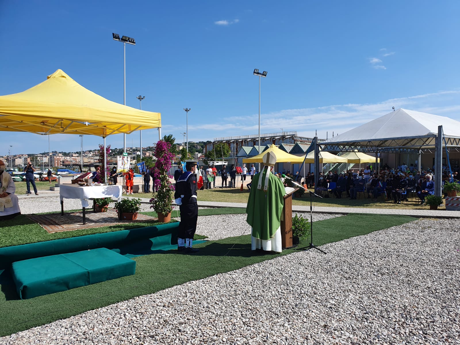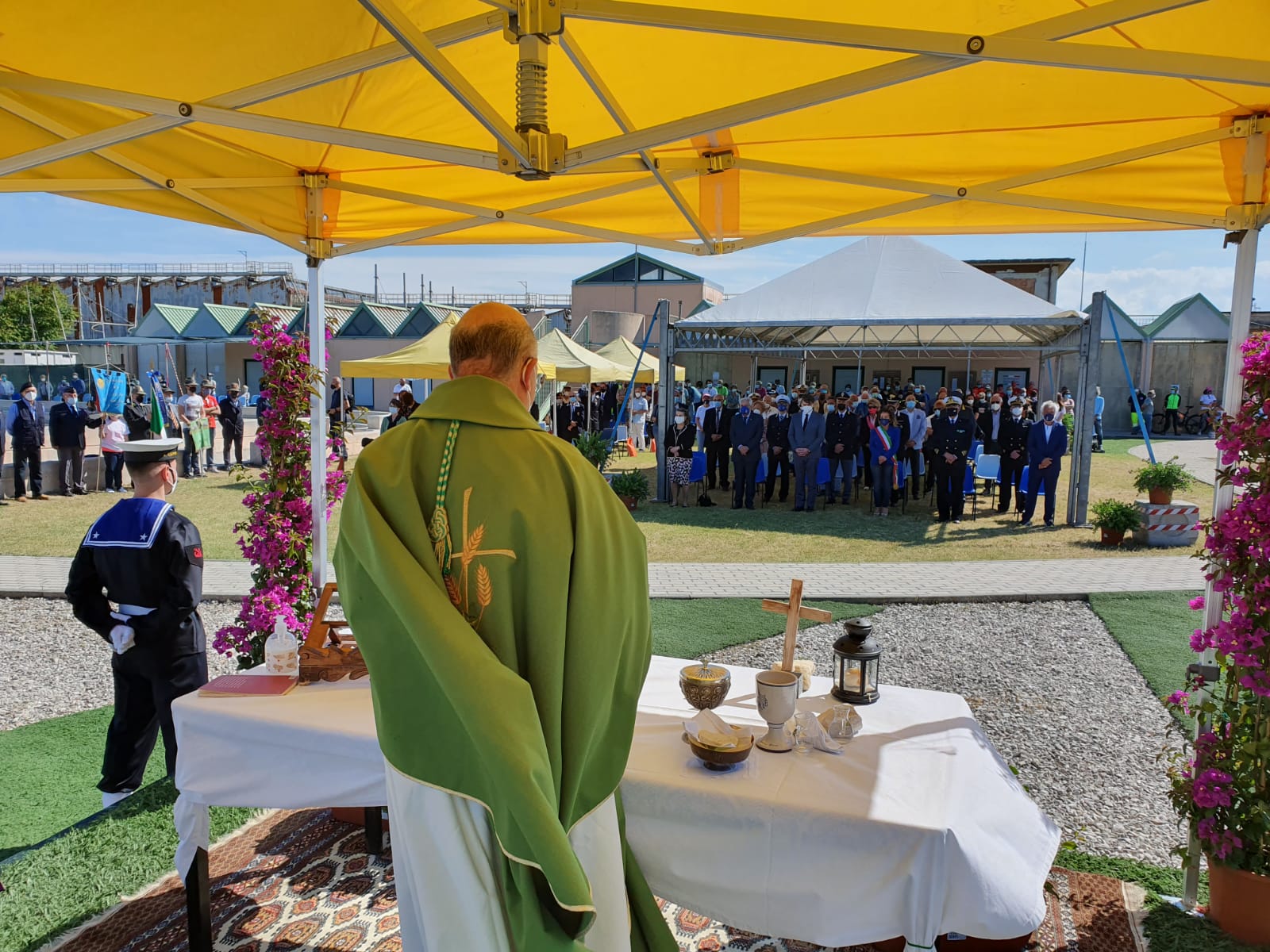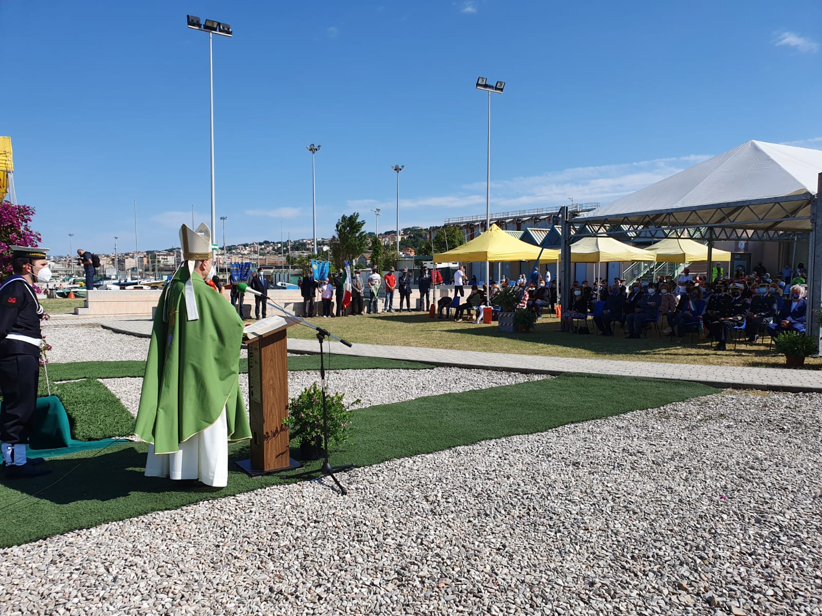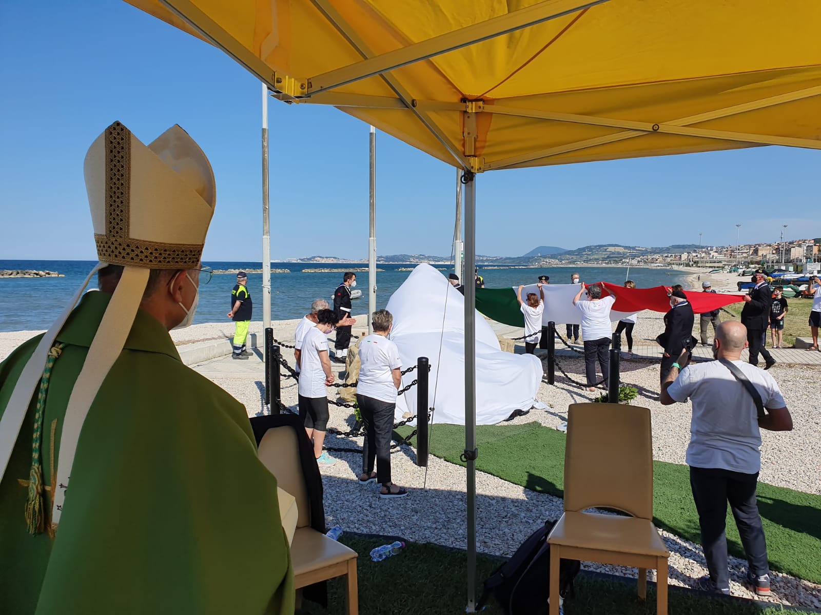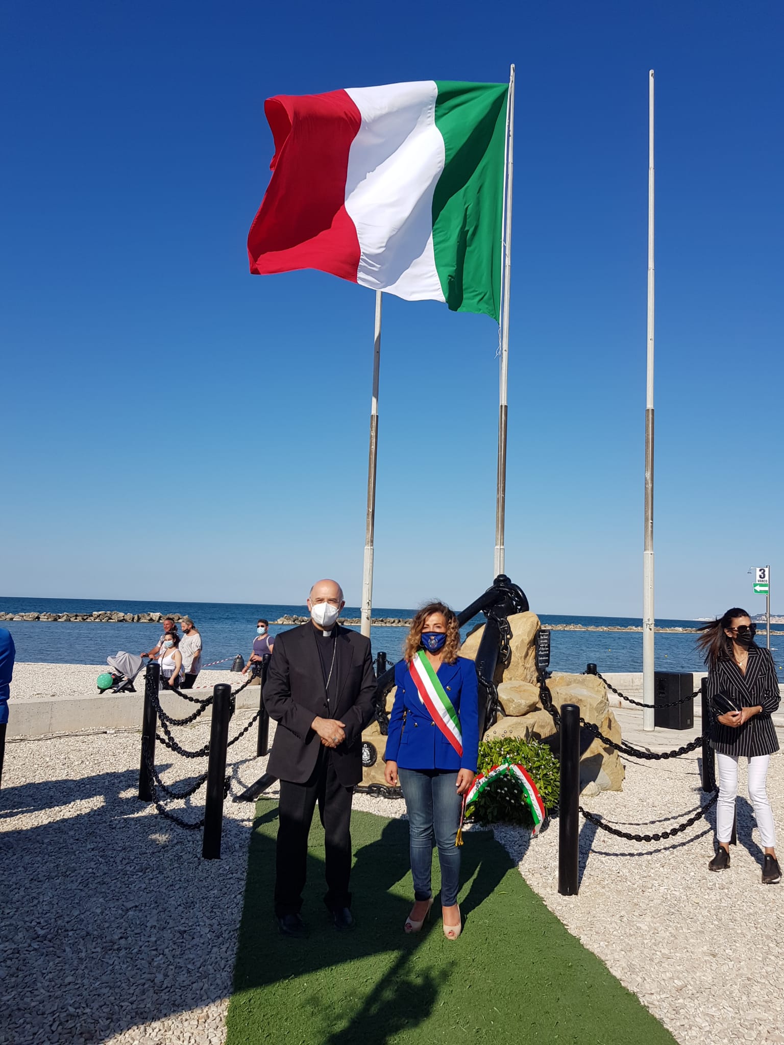 Hanno partecipato tanti rappresentanti delle autorità civili, militari e religiose ma la cerimonia si è svolta nel pieno rispetto delle norme anti-contagio, grazie anche al supporto dei volontari del gruppo comunale di Protezione civile. Hanno collaborato all’evento l’Agesci Falconara 3, la Società nazionale di salvamento, l’associazione Jolly Sport, l’Associazione pesca sportiva Villanova, che hanno sede all’ex Tiro a volo, oltre alla Croce Gialla di Falconara.