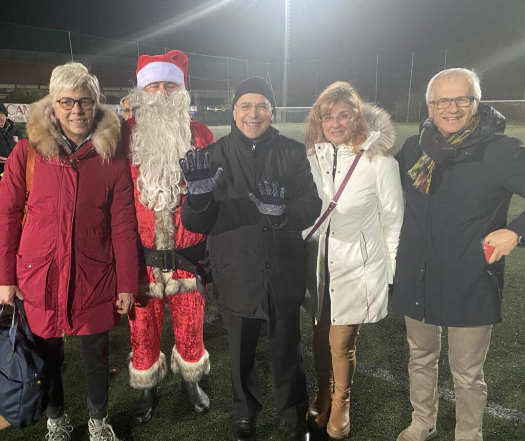 Un pomeriggio di festa in famiglia per la Scuola Calcio Giovane Ancona. La società, guidata dal Presidente Diego Franzoni, ha invitato come da tradizione i ragazzi, accompagnati da mamme e papà, nonne e nonni, a festeggiare tutti insieme il Natale, come una sola grande squadra. Protagonista al centro del campo Mons. Angelo Spina, Arcivescovo di Ancona Osimo, sempre presente agli appuntamenti della Società Biancorossa. Circondato da due ali di giovani e di genitori, il Presule ha ricordato il vero valore delle Festività, come momento di incontro con gli affetti, le amicizie, alla ricerca di pace, generosità e gentilezza. Spina ha colto l’occasione per donare ai ragazzi e alle famiglie un suo libretto “Un Padre Nostro in 5 minuti o 5 Padre Nostro in un minuto?”. L’Arcivescovo ha tenuto a sottolineare che a Natale si festeggia Gesù, che è venuto a portare agli uomini, l’amore di Dio e la salvezza, una luce che si accende dentro i nostri cuori per amare il prossimo e non rimanere indifferenti, sottolineando che la pace nasce dalla condivisione di un unico pane. Accolto con un’ovazione da Stadio, è poi arrivato Babbo Natale (un grazie speciale al Dirigente Fabio Micheli), trasportato fino al campo non dalla slitta, ma da un pulmino della Società dorica perché, lo ha annunciato scherzando lo stesso Presidente Franzoni, sarà un nuovo calciatore, grande acquisto della Giovane Ancona 2023. “Gli diamo la numero 10” hanno subito cantato i baby calciatori, che hanno ricevuto da lui carezze, sorrisi e dolci a volontà. E’ stata anche l’occasione per organizzare una raccolta fondi che la Società Sportiva, rappresentata dalla Vice Presidente Lorella belvederesi, dal Responsabile del Settore Tecnico Santini e dal fondatore Michele Maccione, ha voluto dedicare alla Caritas Diocesana di Ancona Osimo, che proprio in questi giorni ha aperto una nuova mensa dedicata ai più poveri della città. A completare la festa, gli omaggi di due aziende partner della Giovane Ancona: SportLife 24 ha regalato ai ragazzi, allo staff dorico e al vescovo dei comodi guanti termici, mentre King Sport ha donato a tutti delle utili sacche sportive.