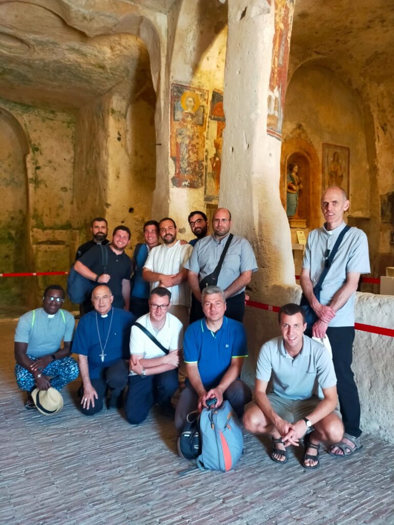 I seminaristi e giovani sacerdoti da Molfetta si sono recati a Matera per visitare le chiese rupestri e riflettere sulla religiosità popolare. A Bari sono stati accolti da padre Lorenzo domenicano. Hanno visitato la cripta di San Nicola, partecipato alla divina liturgia ortodossa con le comunità dell’est. Dopo la celebrazione eucaristica presieduta dall’arcivescovo Angelo, padre Lorenzo ha approfondito il tema dell’ ecumenismo facendo dono a tutti di una boccetta della manna di san Nicola. Nella cattedrale di Bari hanno celebrato l’ora media e continuato il cammino di riflessione tra le Chiese orientali e occidentali