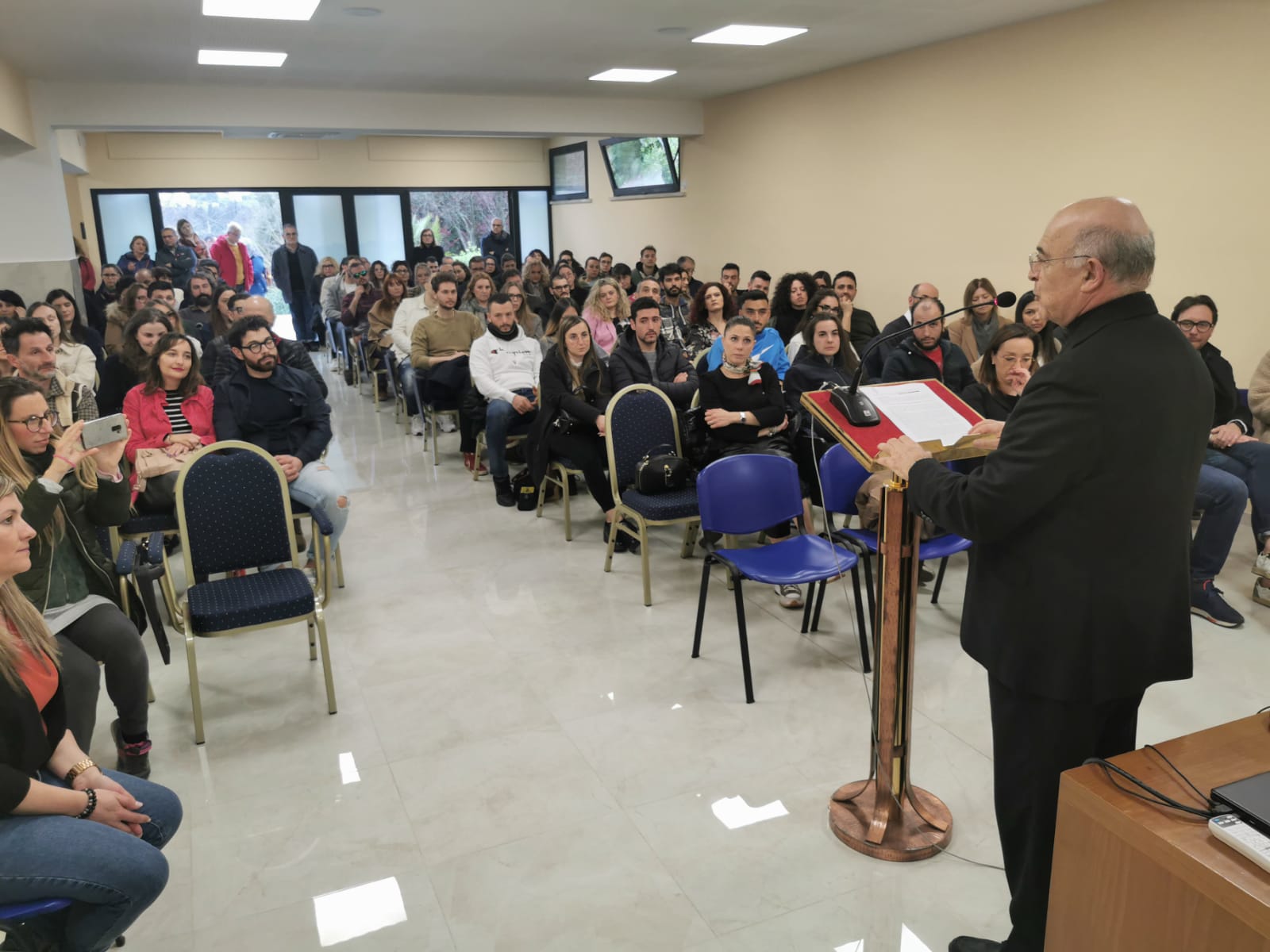 A conclusione del cammino di preparazione al matrimonio, 67 coppie di fidanzati si sono incontrate oggi pomeriggio presso il Centro pastorale diocesano, per vivere una giornata di formazione, condivisione e preghiera. Accolte da don Davide Duca, Alessio Marconi e Federica Fava, direttori dell’Ufficio diocesano della Pastorale Familiare, hanno ascoltato la riflessione di Mons. Angelo Spina che, partendo dai colori dell’amore, ha poi commentato l’inno alla carità di San Paolo per spiegare gli atteggiamenti e le qualità che devono essere coltivate all’interno della coppia, come la pazienza e il perdono.
