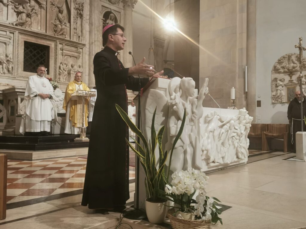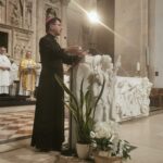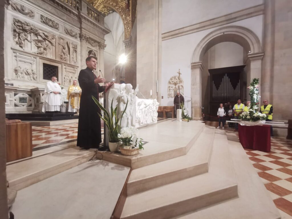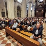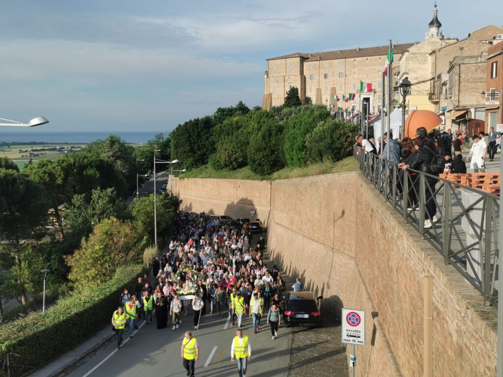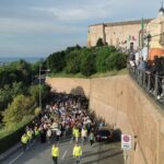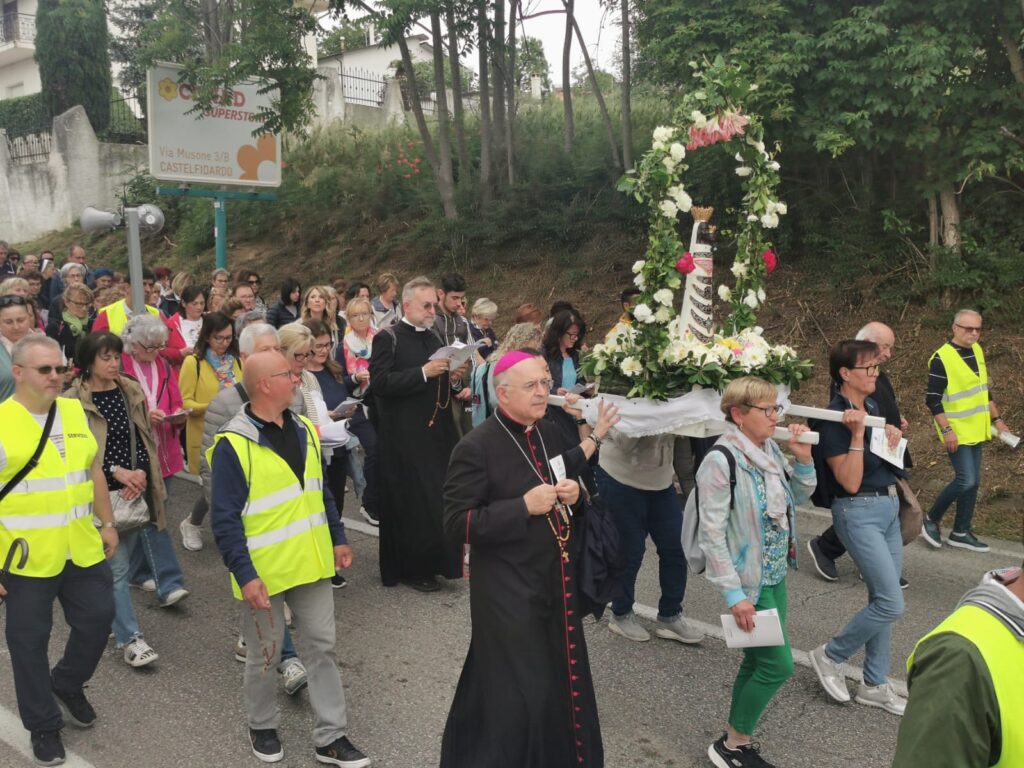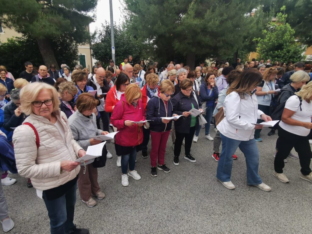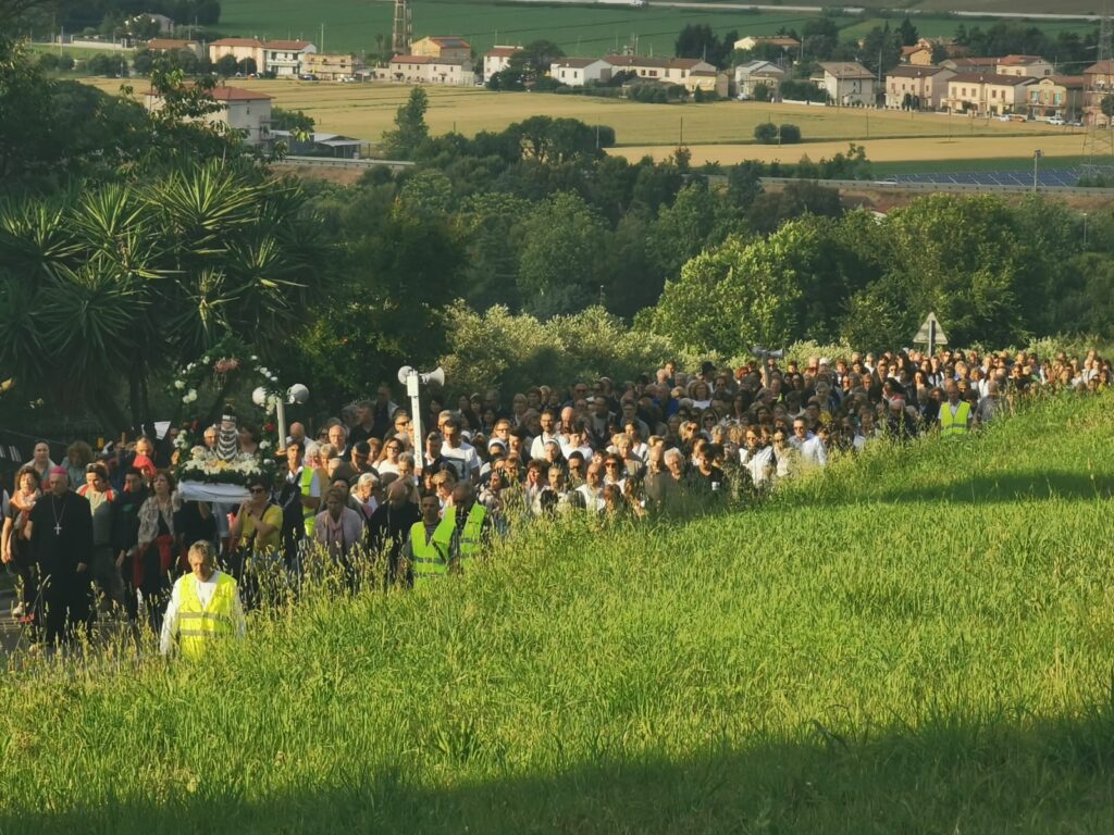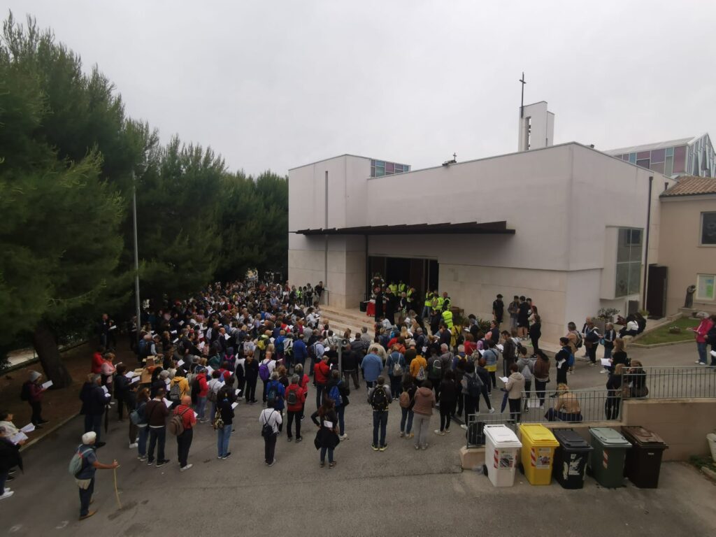 Il meteo prevedeva pioggia, ma il tempo minaccioso non ha fermato le otre mille persone che si sono ritrovate presso la parrocchia di Crocette, a Cstelfidardo, per iniziare il cammino a piedi fino alla Santa Casa di Loreto. Dopo i saluti da parte dell’Assessore al comune di Castelfidardo, del parroco don Franco, l’arcivescovo Angelo ha salutato i fedeli e ringraziato quanti si sono impegnati ad organizzare il pellegrinaggio. Prima della partenza ha detto:<<Il pellegrinaggio diocesano Crocette (Castelfidardo) – Loreto, è un dono di grazia per tutti noi, soprattutto in questo anno che ci prepara al Giubileo del 2025, anno dedicato alla preghiera. Tutti dobbiamo recuperare il desiderio di stare alla presenza del Signore in preghiera, ascoltarlo e adorarlo. Nel nostro tempo c’è uno scenario mondiale non sereno. La crisi ecologica-economica-sociale aggravata dalla recente pandemia; le guerre, che seminano morte, distruzione e povertà; la cultura dell’indifferenza e dello scarto che tende a soffocare le aspirazioni di pace e di solidarietà e a emarginare Dio dalla vita personale e sociale. La preghiera è il respiro della fede, è la sua espressione più propria. Come un grido silenzioso che esce dal cuore di chi crede e si affida a Dio. Con la preghiera possiamo sollevare il mondo. E allora! Camminiamo insieme, pregando, cantando, portando tutta la nostra vita e il nostro tempo con le angosce e le tristezze, le gioie e le speranze ai piedi della Madonna, a Loreto, alla Santa Casa, luogo teologico dove dal “sì” di Maria, Dio si è fatto carne. Recitiamo con fede il santo Rosario. Il contenuto del Rosario è il volto di Cristo contemplato con gli occhi e con il cuore di Maria. Esso si è rivelato una preghiera alla portata di tutti, ed insieme preghiera capace di far innalzare l’animo verso le vette della più alta contemplazione. La vita è come un viaggio sul mare della storia, spesso oscuro ed in burrasca, un viaggio nel quale scrutiamo gli astri che ci indicano la rotta. Gesù Cristo è la luce del mondo, il sole sorto sopra tutte le tenebre della storia. Ma per giungere fino a Lui abbiamo bisogno anche di luci vicine – di persone che donano luce traendola dalla sua luce ed offrono così orientamento per la nostra traversata. E quale persona potrebbe più di Maria essere per noi stella di speranza – lei che con il suo «sì» aprì a Dio stesso la porta del nostro mondo; lei che diventò la vivente Arca dell’Alleanza, in cui Dio si fece carne, divenne uno di noi, piantò la sua tenda in mezzo a noi (cfr. Gv 1,14)?» «Così tu rimani in mezzo ai discepoli come la loro Madre, come Madre della speranza. Santa Maria, Madre di Dio, Madre nostra, insegnaci a credere, sperare ed amare con te. Indicaci la via verso il Suo regno! Stella del mare, brilla su di noi e guidaci» (Spei Salvi, 50). Dona a questa umanità ferita il dono della pace. A tutti buon pellegrinaggio!>>.