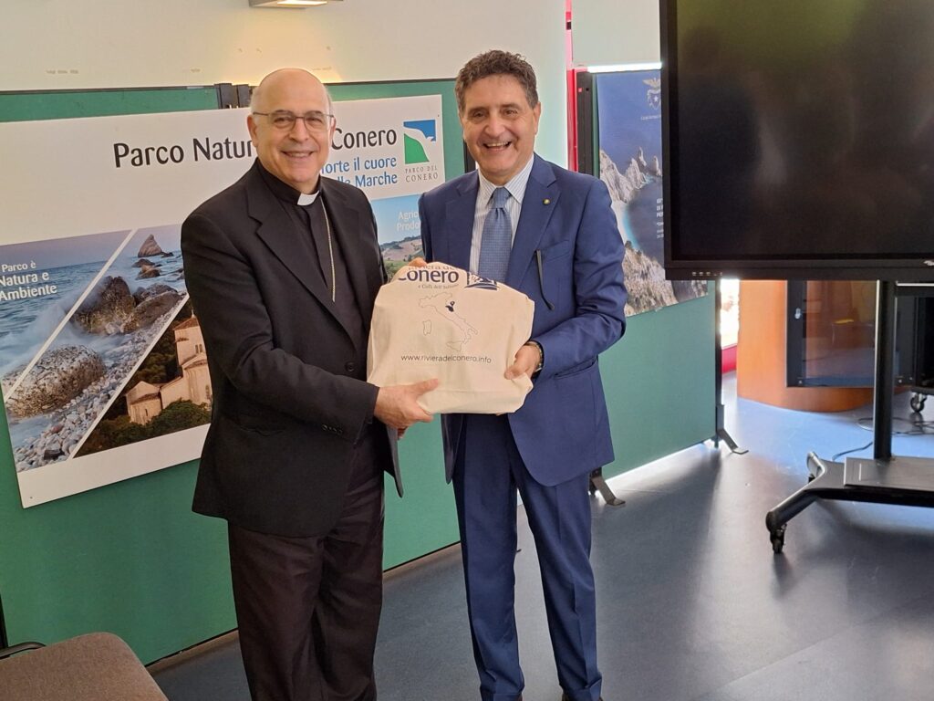 L’arcivescovo. Angelo Spina ha accolto l’invito del Presidente del Parco del Conero, Luigi Conte, visitando il Centro Visite del Parco del Conero e poi gli uffici dell’Ente parco impartendo la benedizione a tutti i presenti.
