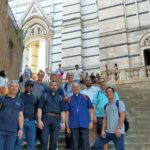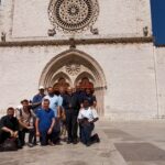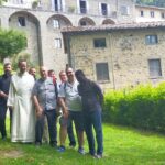 Un cammino iniziato a La Verna, luogo dove San Francesco ricevette le stimmate nel 1224, di cui ricorrono gli ottocento anni. Il tempo, trascorso insieme in fraternità, è stato scandito da diverse tappe, dopo quella a Città di Castello con l’incontro con il vescovo Luciano Paolucci Bedini, originario di Ancona, ci si è recati a Siena per visitare il santuario di santa Caterina e celebrare l’eucaristia, visitare la chiesa di S. Francesco, la cattedrale e fare una visita alla Fraternità di Romena. Altra tappa è stata la visita al monastero di Camaldoli e all’eremo. Ci si è scoperti pellegrini sulle vie di santità tracciate da uomini e donne che hanno testimoniato l’amore a Dio e ai fratelli. Intensa e partecipata è stata la giornata scandita dalle ore vissute con la comunità francescana, a partire dalla visita ai luoghi di La Verna guidati da fra Paolo, con le riflessioni tenute al Sasso Spicco della Verna dove, due anni prima della sua morte, san Francesco ebbe impresse nel suo corpo le piaghe della gloriosa passione di Cristo. Il suo cammino di discepolo lo aveva portato ad una unione così profonda con il Signore da condividerne anche i segni esteriori del supremo atto di amore della Croce. Nel mese di settembre del 1224 si stava realizzando un avvenimento che mai si era verificato nella carne di un uomo: l’impressione delle Stimmate di Cristo crocifisso, “l’ultimo sigillo”, le definì Dante. Dell’apparizione del Serafino ci offre un’ampia descrizione il biografo di Francesco, Tommaso da Celano: “Gli apparve un uomo, in forma di Serafino, con le ali, librato sopra di lui, con le mani distese ed i piedi uniti, confitto ad una croce… Cercava con ardore di scoprire il senso della visione, e per questo il suo spirito era tutto agitato. Mentre era in questo stato di preoccupazione e di totale incertezza, ecco: nelle sue mani e nei piedi cominciarono a comparire gli stessi segni dei chiodi che aveva appena visto in quel misterioso uomo crocifisso. Le sue mani e i piedi apparvero trafitti nel centro da chiodi, le cui teste erano visibili nel palmo delle mani e sul dorso dei piedi, mentre le punte sporgevano dalla parte opposta…Così pure nei piedi erano impressi i segni dei chiodi sporgenti sul resto della carne. Anche il lato destro era trafitto come da un colpo di lancia, con ampia cicatrice, e spesso sanguinava, bagnando di quel sacro sangue la tonaca e le mutande”.