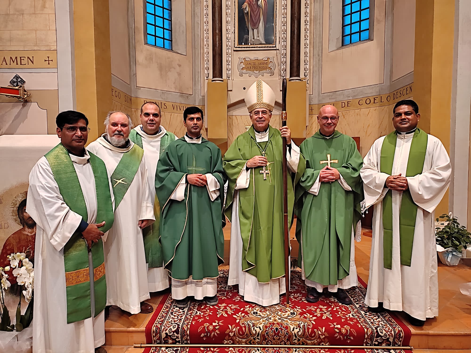 Domenica pomeriggio (20 ottobre), l’Arcivescovo Angelo Spina ha presieduto la celebrazione eucaristica nella parrocchia di San Sabino e ha presentato il nuovo parroco alla comunità. Ha ringraziato l’amministratore parrocchiale Padre Jesudas Arackaparambil Chacko e il vicario parrocchiale Padre Norbert della Congregazione dei Pallottini, che hanno servito la parrocchia di San Sabino a Osimo. Don Luca Bottegoni, Vicario generale della diocesi, ha letto il decreto di nomina del nuovo parroco don Andrea Cesarini e del vicario parrocchiale Padre Benny Madathiparampil. L’Arcivescovo ha messo in evidenza i cambiamenti che ci sono nella diocesi per il cammino delle unità pastorali, ha ringraziato tutti e con la preghiera ha affidato al Signore il nuovo parroco e il vice parroco, rivolgendo un particolare ringraziamento al generale e al provinciale della Congregazione dei Pallottini. Don Andrea Cesarini rimane anche parroco della Sacra Famiglia di Osimo, che guida dal 2022. Padre Benny rimane vicario parrocchiale di San Marco, e ora è stato nominato anche vicario parrocchiale di San Sabino e della Sacra Famiglia. Un forte applauso da parte della comunità ha accolto il nuovo parroco e il vicario parrocchiale. È seguito un momento di festa e di accoglienza da parte della comunità.