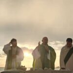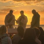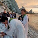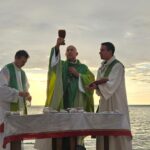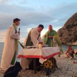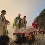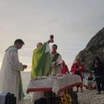 Dal porto di Numana, quando era ancora buio, sono partiti tre traghetti colmi di passeggeri per recarsi alla spiaggia delle due Sorelle, nel cuore della riviera del Conero. E’ un appuntamento che si ripete da anni, promosso dal parroco don Michele Marchetti. Giunti a riva, le centinaia di passeggeri hanno sostato per partecipare alla celebrazione eucaristica presieduta dall’arcivescovo Angelo. Doveva essere una giornata piena di sole, ma è arrivata improvvisa la pioggia fitta. L’Arcivescovo, ricordando gli ottocento anni del Cantico di frate sole, scritto da san Francesco, ha invitato a ringraziare il Signore per “sorella pioggia”, segno di purificazione e di benedizione, per tutti i doni ricevuti, mentre all’orizzonte si vedeva sorgere il sole, si sentiva il respiro del mare, la natura si colorava di bellezza e apparivano sempre più chiari, bagnati dalla pioggia, i due scogli gemelli emergenti dalle acque del mare limpidissimo e calmo, che se visti da nord assomigliano a due suore poste in preghiera. Don Michele ha salutato le numerose persone assiepate sulla spiaggia, con capo coperto a causa della pioggia, e li ha invitai a vivere il momento della celebrazione eucaristica con fede. All’incontro era presente anche David, diacono che verrà ordinato sacerdote il 27 settembre nella cattedrale di S. Ciriaco ad Ancona, insieme a Jacopo. Durante l’omelia l’Arcivescovo, commentando le letture, ha invitato i fedeli a riscoprire il valore della mitezza e dell’umiltà, così disprezzate nel nostro tempo da tanti atteggiamenti arroganti e di prepotenza, ma necessari per fare il bene senza interessi, convinti che “gli ultimi saranno i primi e i primi gli ultimi”. All’improvviso ha smesso di piovere e si è potuto gustare il momento di celebrazione, di fraternità, di bellezza della natura. Don Michele Marchetti ha ringraziato i presenti e li ha invitati a risalire sui traghetti dove è stata offerta una abbondante colazione. E’ stato un momento ricco di fraternità, di fede, di preghiera e di condivisione, in un luogo dove la natura presenta tutta la sua bellezza e invita al rispetto e alla contemplazione. I partecipanti hanno sottolineato con un forte applauso l’iniziativa e il momento vissuto con la pace e la gioia nel cuore.
