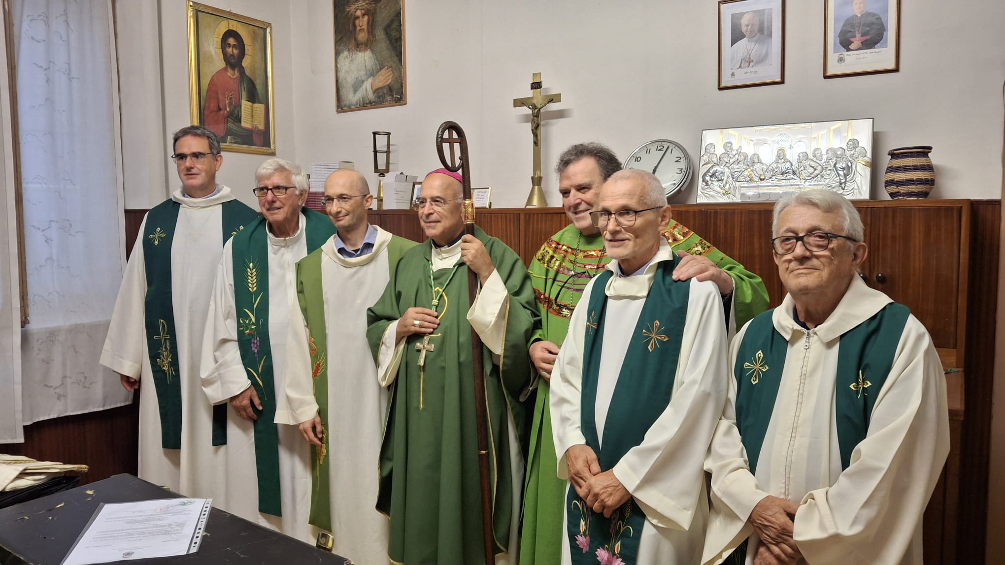 La celebrazione è iniziata con l’intervento dell’arcivescovo Angelo che ha salutato il Superiore Regionale dei Missionari Saveriani della Regione Italiana, Monsignor Natale Paganelli, i sacerdoti presenti e i fedeli, spiegando le motivazioni del cambiamento. Ha ringraziato don Davide, i parrocchiani tutti. Gerardo, a nome della Comunità del Crocifisso, ha rivolto parole significative a don Davide:<<Questa comunità con te alla guida in questi anni, ha continuato a piantare e irrigare, a lasciar cadere la manciata di semi in modo convinto, fedele e coerente. Abbiamo condiviso la passione per l’annuncio del Vangelo …Grazie!>>. Don Davide ha salutato la Comunità donando l’immagine del crocifisso di San Damiano a cui volgere lo sguardo di fede per sentirsi uniti. Don Carlo Carbonetti ha letto il decreto di nomina del nuovo parroco e del viceparroco a cui è seguito un fragoroso applauso. Al termine della celebrazione eucaristica da parte della Comunità ai nuovi pastori sono state rivolte queste parole:<<Benvenuti tra noi. Stiamo vivendo un momento importante: accogliere il nuovo parroco, guida e punto di riferimento per la comunità parrocchiale e l’impegno nella fede. La presenza dell’Arcivescovo in questa circostanza sottolinea l’importanza della nuova nomina e la continuità della missione pastorale. Caro Padre Emanuele e caro Padre Diego apprezziamo la vostra disponibilità nel guidarci nel cammino della fede. Vi offriamo il nostro sostegno e la nostra collaborazione e vi auguriamo un ministero ricco di frutti e di crescita spirituale per tutti noi. Siamo lieti di accogliervi…vi offriamo questi doni come segno del nostro affetto>>. Hanno preso la parola don Emanuele e don Diego ringraziando tutti per l’accoglienza calorosa. Monsignor Natale Paganelli, Superiore Regionale dei Missionari Saveriani della Regione Italiana, ha ringraziato l’Arcivescovo per la fiducia di affidare la parrocchia ai Saveriani, e ha invitato i tanti giovani a rispondere alla chiamata del Signore ad essere nella Sua Chiesa sacerdoti e suore>>. Con la foto di gruppo e un buffet all’esterno della Chiesa ci è concluso il momento di insediamento del nuovo parroco e del viceparroco con l’augurio di benvenuto e la gioia nel cuore da parte di tutti.