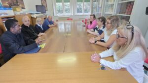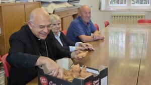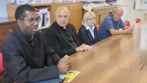Tra gli incontri, anche quello con i ministri straordinari della comunione, coloro che organizzano il Grest e i catechisti. Il parroco don Pierre-Andrè ha raccontato che da tre anni la parrocchia organizza il Grest per i bambini e offre questo servizio gratuitamente alle famiglie. «È impegnativo – ha detto – ma lo facciamo con lo spirito del Vangelo, con amore e generosità». Gli educatori del Grest hanno quindi spiegato che in questi anni hanno scelto alcuni temi, come la fraternità universale con l’enciclica Fratelli tutti, e l’ecologia e il rispetto della nostra Madre Terra con la Laudato si’. Hanno poi mostrato all’Arcivescovo alcuni oggetti realizzati con i bambini, dalle candele agli animali modellati con la creta, fino all’albero di ulivo piantato vicino alla parrocchia, simbolo di pace.