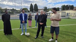 Durante la settimana, l’Arcivescovo ha incontrato anche le associazioni, tra cui l’Associazione Polisportiva Dilettantistica Passatempese e “Senso Unico“. Il presidente della Passatempese Maurizio Ghergo, accogliendo Mons. Angelo Spina, don Pierre-Andrè, il presidente di “Senso Unico” Enrico Maria Mazzieri e l’archivista parrocchiale Giuseppe Lanari, ha spiegato che i ragazzi sono circa 180 e ha mostrato il nuovo campo di calcio, inaugurato il 21 settembre. Mons. Angelo Spina ha giocato con i ragazzi, calciando il pallone, e ha ricordato che il calcio è «un gioco di squadra, che insegna a stare con gli altri. È uno strumento educativo, in cui i ragazzi divertendosi imparano a socializzare, a rispettare le regole e a lavorare insieme a un gruppo di compagni. Lo sport dona tanta gioia, ma anche alcune sofferenze. Non sempre si può vincere. Bisogna imparare anche a perdere, perché dalle sconfitte si impara a fare meglio». L’Arcivescovo li ha anche invitati a ringraziare Dio che ha donato loro la gioia di giocare e i piedi per calciare e ha sottolineato cosa non deve esserci nello sport, «la violenza e il doping. Lo sport deve essere leale».