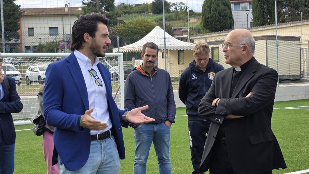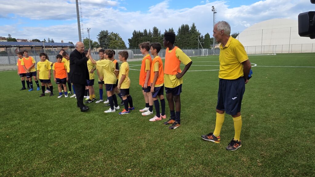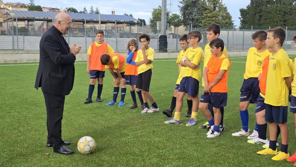 Durante la settimana, l’Arcivescovo ha incontrato anche le associazioni, tra cui l’Associazione Polisportiva Dilettantistica Passatempese e “Senso Unico“. Il presidente della Passatempese Maurizio Ghergo, accogliendo Mons. Angelo Spina, don Pierre-Andrè, il presidente di “Senso Unico” Enrico Maria Mazzieri e l’archivista parrocchiale Giuseppe Lanari, ha spiegato che i ragazzi sono circa 180 e ha mostrato il nuovo campo di calcio, inaugurato il 21 settembre. Mons. Angelo Spina ha giocato con i ragazzi, calciando il pallone, e ha ricordato che il calcio è «un gioco di squadra, che insegna a stare con gli altri. È uno strumento educativo, in cui i ragazzi divertendosi imparano a socializzare, a rispettare le regole e a lavorare insieme a un gruppo di compagni. Lo sport dona tanta gioia, ma anche alcune sofferenze. Non sempre si può vincere. Bisogna imparare anche a perdere, perché dalle sconfitte si impara a fare meglio». L’Arcivescovo li ha anche invitati a ringraziare Dio che ha donato loro la gioia di giocare e i piedi per calciare e ha sottolineato cosa non deve esserci nello sport, «la violenza e il doping. Lo sport deve essere leale».