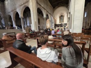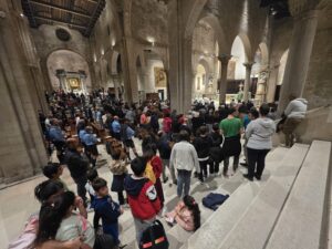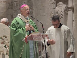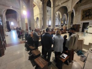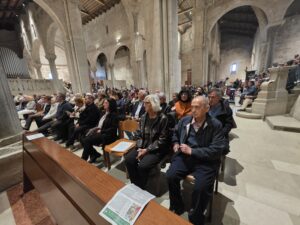 Dopo questo momento di ascolto e condivisione, i partecipanti si sono incamminati in pellegrinaggio verso la Cattedrale di San Ciriaco, dove si è svolta la celebrazione eucaristica presieduta dall’Arcivescovo. Durante l’omelia, ha invitato tutti ad essere testimoni di speranza nel mondo: nelle famiglie, nei luoghi di lavoro, nelle parrocchie, tra chi vive situazioni di solitudine o difficoltà. Ha parlato della grazia del Giubileo e dell’indulgenza plenaria e ha sottolineato che «la malattia più brutta è quella spirituale. Il peccato procura sofferenze, corrompe e crea ingiustizie. Dio di fronte al male non resta impassibile. Lui è vicino, ma dobbiamo guarire i nostri cuori dalla prepotenza, dall’indifferenza e dall’egoismo. Dio di fronte al peccato dell’uomo non si ferma. Ci ha donato Gesù che si è fatto inchiodare ed è morto per la nostra salvezza. Dalle sue piaghe siamo stati guariti. Guardiamo a Lui che è il volto della misericordia del Padre, per essere guariti e salvati.