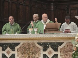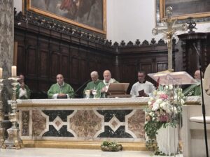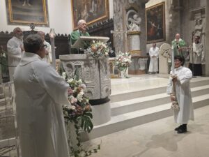 All’offertorio sono stati portati all’altare piantine e fiori di diversi colori, per rappresentare la varietà e la bellezza dei vari carismi. Un segno che ha simboleggiato l’impegno ad essere giardinieri di pace, a partire dalla cura e dalla custodia delle relazioni tra loro, con i ragazzi, le famiglie, i malati, i poveri, e tutti coloro con cui condividono l’esperienza del servizio. Ringraziando la Consulta delle aggregazioni laicali, il coro formato dai rappresentanti dei vari movimenti, e i fedeli presenti, Mons. Angelo Spina li ha invitati a «camminare sempre insieme. Ognuno di voi è un fiore diverso, ma tutti insieme formiamo il giardino di Dio, un’unica bellezza. Non devono esserci divisioni tra voi. Camminate insieme nell’unità, che è dono dello Spirito Santo».