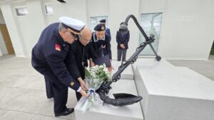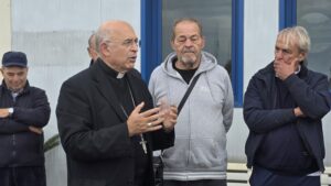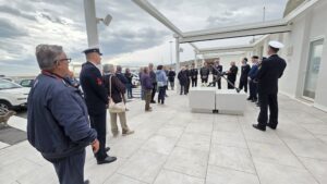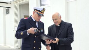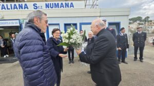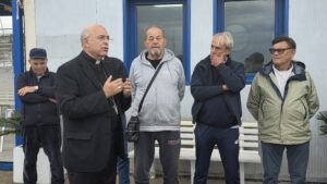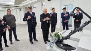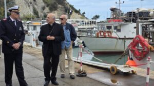 L’Arcivescovo, insieme a don Michele, don Enrico e agli operatori del porto, è poi salito su una barca e ha fatto un breve giro all’interno del porto, prima di raggiungere il Cippo commemorativo ai caduti del mare, a forma di ancora, inaugurato a giugno in occasione della festa della Marina Militare e posto davanti alla sede rinnovata dell’ufficio marittimo. Mons. Angelo Spina ha deposto un mazzo di fiori accanto al cippo commemorativo e ha sottolineato che «l’ancora simboleggia la speranza. Se la fede è il fondamento e l’amore è il compimento, la speranza è l’ancora di salvezza che lanci e ti aiuta ad arrivare al porto, perché certe cose non si vedono subito. Bisogna attenderle con speranza».