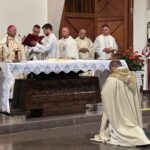 La chiesa di Santa Maria di Loreto, gremita di fedeli, ha vissuto la celebrazione eucaristica presieduta dall’arcivescovo Angelo che ha comunicato ai fedeli i motivi del cambiamento e il cammino verso le Unità pastorali. Don Massimiliano ha letto i decreti di nomina a parroco di don Samuele Costantini e di viceparroco di don Mario Girolomini delle parrocchie di S. Maria di Loreto e dei Santi Filippo e Giacomo. All’inizio don Mario, che è stato parroco dal 2013 ha rivolto un saluto di ringraziamento alla comunità:<<Ringrazio il Signore anche per la preghiera condivisa con questa comunità: nelle solenni celebrazioni domenicali e nei silenzi delle messe feriali, la vostra fede e la vostra partecipazione hanno nutrito la mia, facendomi crescere nell’amore verso il Signore…Un pensiero pieno di riconoscenza va anche a quanti, con spirito fraterno e cuore cristiano mi sono stati vicino, offrendo consigli, sostegno e conforto nei momenti più difficili, perché anche un sacerdote conosce la fatica e il peso del cammino…Il mio desiderio più profondo è continuare a vivere il sacerdozio con discrezione e fecondità…Un forte augurio don Samuele a cui rinnovo la mia disponibilità e collaborazione>>. Al termine della celebrazione una persona della comunità ha ringraziato don Mario e dato il saluto di benvenuto a don Samuele:<<Ti diamo il benvenuto, ti accogliamo con gioia…Desideriamo con entusiasmo offrirti la nostra collaborazione a far crescere questa unità pastorale…Cosa ci aspettiamo da te? Che ci aiuti a cercare e ad amare sempre più Gesù: Parola, Perdono e Eucaristia, in ogni forma e attività: solo uniti a Gesù cresceremo in unità pastorale…Ti accompagniamo con la nostra preghiera…Benvenuto!>>. Don Samuele Costantini, dopo aver ricevuto come dono da don Mario e dalla Comunità il Crocifisso di San Damiano ha detto:<<Vengo a voi come uomo prima di tutto e soprattutto, con il suo bagaglio come ciascuno di umanità, di gioie e di dolori…Vengo a voi come figlio della Chiesa che è la casa di tutti…Vengo a voi come prete per annunciare il Vangelo, per santificare e camminare sulle vie dell’unità…Vengo a voi come mendicante e cercatore della verità consapevole che la missione della Chiesa non è l’autoconservazione ma l’annuncio del Vangelo…Diventiamo insieme cercatori di strade nuove, mendicanti di luce per comprendere ciò che dobbiamo fare…L’ultimo pensiero è rivolto a don Mario: insieme siamo preti per il Signore Gesù, insieme siamo preti per questa Chiesa diocesana, insieme condividiamo la cura pastorale delle nostre belle comunità parrocchiali…Questa sera tutti insieme chiediamo al Signore la grazia di aprire il cuore gli uni agli altri con le comunità delle Grazie, di Tavernelle, di San Francesco, di Montacuto. Grazie!>>. L’Arcivescovo ha ringraziato tutti per la partecipazione e ha fatto cogliere la bellezza del camminare insieme guardando al Signore Gesù crocifisso e risorto, nostro Pastore. Dopo la celebrazione è seguito un momento di convivialità e di festa nel salone della parrocchia.