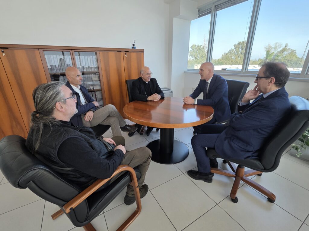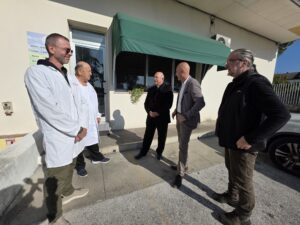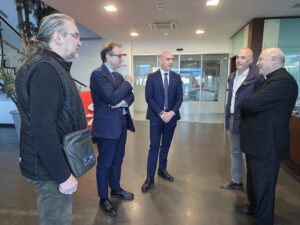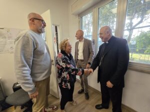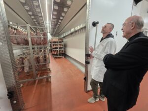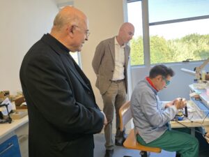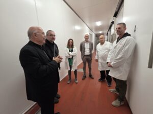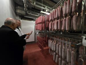 La visita è proseguita presso la Multimedica Marche, con il titolare Giancarlo Gambadori che ha mostrato il laboratorio odontotecnico. L’Arcivescovo ha ricordato che prendersi cura delle persone, attraverso la professionalità e l’attenzione quotidiana, è una forma concreta di carità e di impegno per il bene comune. Infine Massimo Massi ha accolto il gruppo nella sua azienda Corte Marchigiana Eureka che da circa 50 anni produce prodotti tipici della norcineria marchigiana. Mons. Angelo Spina ha visitato le celle per l’asciugatura e la stagionatura dei salumi e si è complimentato per il loro impegno e per la qualità dei loro prodotti.