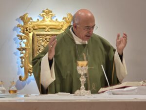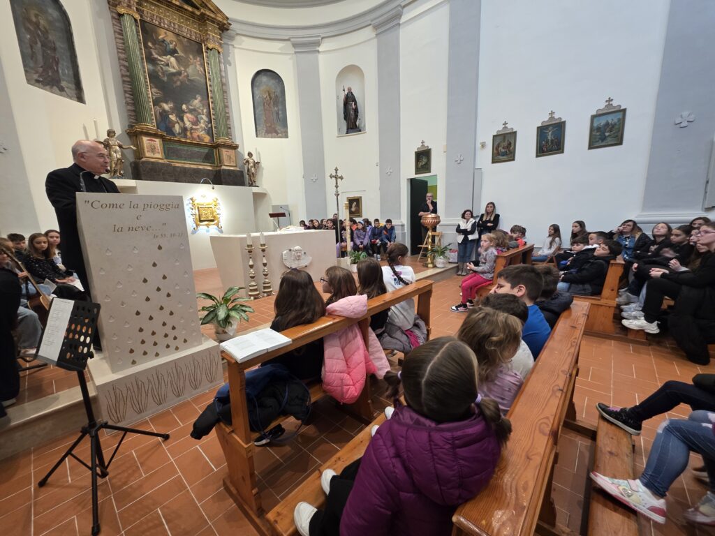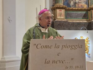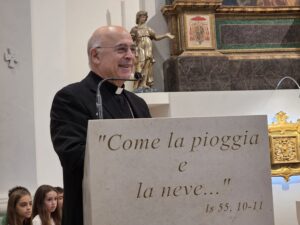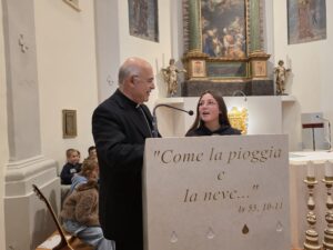 Mons. Angelo Spina ha poi cantato il brano “Laudato sii, Signore mio”, ricordando che quest’anno ricorrono gli 800 anni dalla composizione del Cantico di Frate Sole di San Francesco, conosciuto anche come “Cantico delle Creature”. Ha invitato tutti a «lodare Dio» e a ringraziarlo per i suoi doni e ha sottolineato che in parrocchia «si impara soprattutto ad amare».