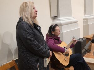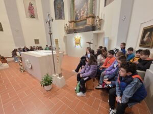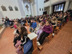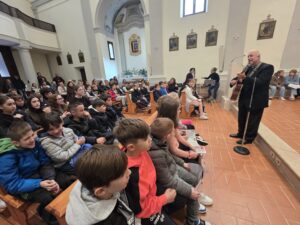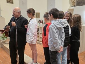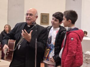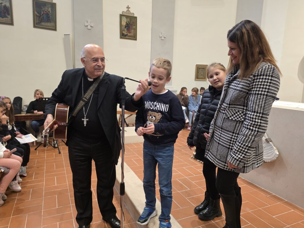 Un altro momento particolarmente significativo è stato l’incontro con i bambini e i ragazzi del catechismo, accompagnati dai loro genitori e dai catechisti. Dopo aver preso la chitarra e cantato insieme la canzone “Io ho un amico che mi ama”, l’Arcivescovo ha chiesto ai ragazzi perché frequentano il catechismo, e una bambina ha risposto: «Per imparare tante cose su Gesù».