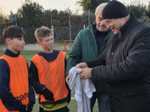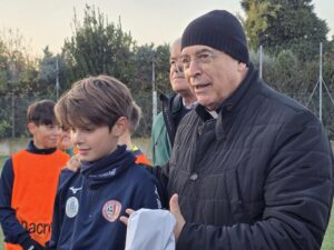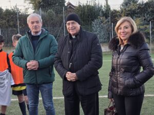 Il sindaco Stefania Signorini ha ringraziato l’Arcivescovo per la visita e ha sottolineato che «lo sport ha la capacità di aggregare e diffondere valori che sono sempre stati importanti, ma oggi lo sono ancora di più. Lo sport ha una grande valenza inclusiva e, a Falconara, abbiamo organizzato pochi giorni fa la Marcialonga d’Autunno, con il gruppo Insuperabily che ha accompagnato i bambini e ragazzi con disabilità. Questo è un segno tangibile di quello che lo sport riesce a diffondere». Il presidente della Academy Cfc ha regalato una maglietta del settore giovanile all’Arcivescovo, che ha calciato un rigore e ha giocato con i bambini, prima di recarsi al PalaLiuti dove ha incontrato le società sportive di pallavolo Sabini Castelferretti e ASD Pallavolo Castelferretti.