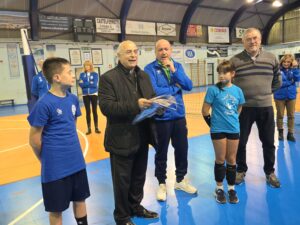 Il presidente della Sabini Castelferretti Giorgio Barbanera ha raccontato che «il prossimo anno la società compie 60 anni. Gli iscritti sono più di cento, dai bambini del minivolley fino alla prima squadra che milita in Serie B nazionale». Ha poi donato all’Arcivescovo il gagliardetto e un libro sui primi 25 anni di attività della società. Anche Fabrizio Zaccarelli, presidente dell’ASD Pallavolo Castelferretti, ha regalato il gagliardetto, una brochure e il libro scritto da Fabio Borgognoni, fondatore della società nata nel 1982. «Le tesserate sono circa 160, – ha spiegato – dal minivolley fino alla prima squadra che milita in Serie C. Con gli allenatori ci impegniamo a insegnare ai ragazzi il rispetto e i valori sani della vita».