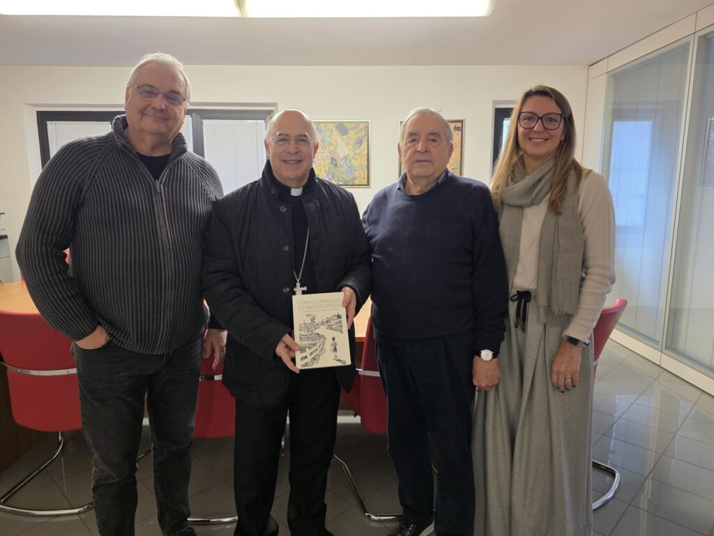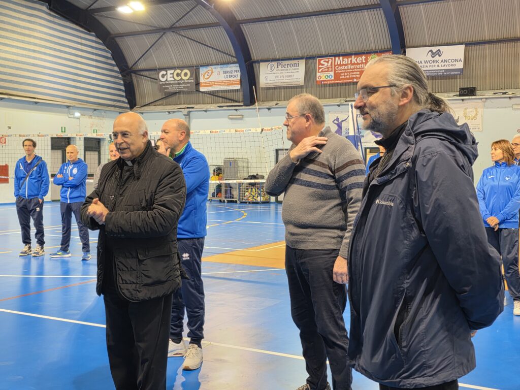 Il presidente della Sabini Castelferretti Giorgio Barbanera ha raccontato che «il prossimo anno la società compie 60 anni. Gli iscritti sono più di cento, dai bambini del minivolley fino alla prima squadra che milita in Serie B nazionale». Ha poi donato all’Arcivescovo il gagliardetto e un libro sui primi 25 anni di attività della società. Anche Fabrizio Zaccarelli, presidente dell’ASD Pallavolo Castelferretti, ha regalato il gagliardetto, una brochure e il libro scritto da Fabio Borgognoni, fondatore della società nata nel 1982. «Le tesserate sono circa 160, – ha spiegato – dal minivolley fino alla prima squadra che milita in Serie C. Con gli allenatori ci impegniamo a insegnare ai ragazzi il rispetto e i valori sani della vita».