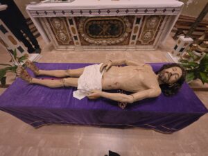 Un altro momento significativo è stata l’anteprima della presentazione del libro “Il Cristo ritrovato”. La statua lignea è stata esposta davanti all’altare della parrocchia e il prof. Luigi Tonelli ha raccontato la storia del Cristo “gross gross” di Castelferretti, una statua completamente snodata che veniva utilizzata durante la settimana santa quando veniva rievocata la passione di Cristo. Ritrovata nei magazzini del Museo diocesano e risalente agli inizi del ‘500, è stata restaurata grazie alla BCC di Ancona e Falconara, e ora è tornata a Castelferretti.