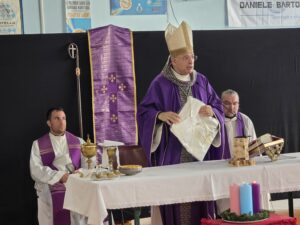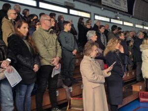 Si è conclusa con grande partecipazione e sincera gratitudine la visita pastorale a Castelferretti dell’Arcivescovo che, dal 23 al 30 novembre, ha incontrato la comunità parrocchiale, le realtà associative, le famiglie e gli anziani. Il momento finale, particolarmente sentito, è stato la Santa Messa animata dalla Banda musicale di Castelferretti, celebrata al PalaLiuti per permettere a tutti di partecipare. Tantissime persone hanno preso parte alla celebrazione: i membri dei gruppi parrocchiali, gli scout, i ragazzi del catechismo e dell’Azione Cattolica. Accanto a loro, i rappresentanti delle realtà associative del territorio, il sindaco Stefania Signorini, la vicesindaco Valentina Barchiesi e l’assessore Marco Giacanella.