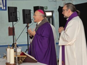 L’Arcivescovo ha anche incontrato, dopo la messa al PalaLiuti, i cresimati e i cresimandi. Con loro ha suonato la chitarra e ha cantato “Io ho un amico che mi ama” e “Laudato sii, Signore mio”, ricordando che quest’anno ricorrono gli 800 anni dalla composizione del Cantico di Frate Sole di San Francesco, conosciuto anche come “Cantico delle Creature”. Ogni sera l’Arcivescovo ha celebrato la Santa Messa e ha approfondito il Credo Apostolico e, al termine di ogni incontro, ha dato la benedizione, sottolineando che «benedire significa che Dio dice bene di noi, ci vuole bene e ci ama sempre». È stata quindi una settimana intensa, ricca di incontri e momenti di ascolto e condivisione, terminata con la gioia nel cuore e l’impegno a vivere sempre più il Vangelo e a camminare insieme.