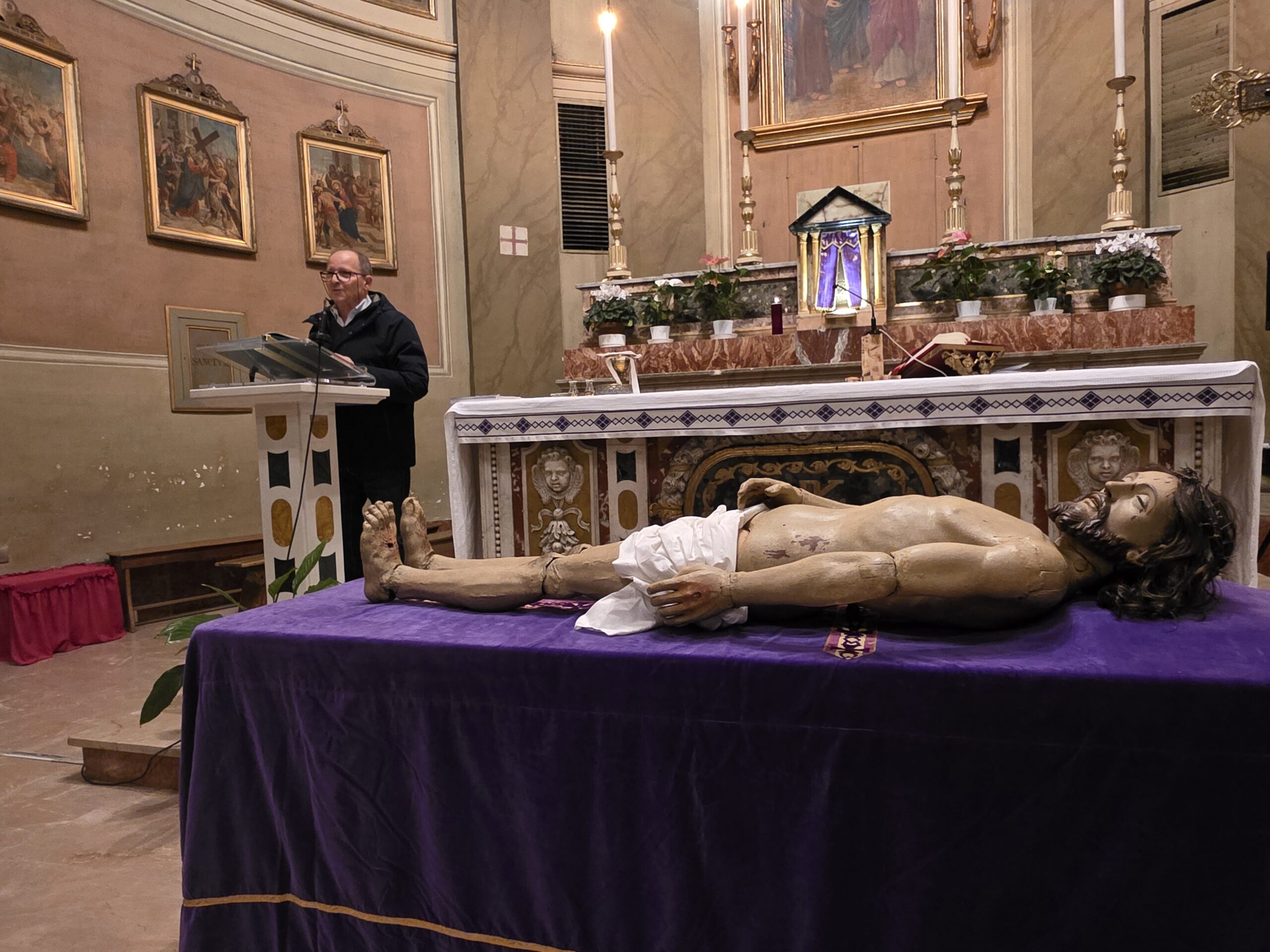 Un altro momento significativo è stata l’anteprima della presentazione del libro “Il Cristo ritrovato”. La statua lignea è stata esposta davanti all’altare della parrocchia e il prof. Luigi Tonelli ha raccontato la storia del Cristo “gross gross” di Castelferretti, una statua completamente snodata che veniva utilizzata durante la settimana santa quando veniva rievocata la passione di Cristo. Ritrovata nei magazzini del Museo diocesano e risalente agli inizi del ‘500, è stata restaurata grazie alla BCC di Ancona e Falconara, e ora è tornata a Castelferretti.