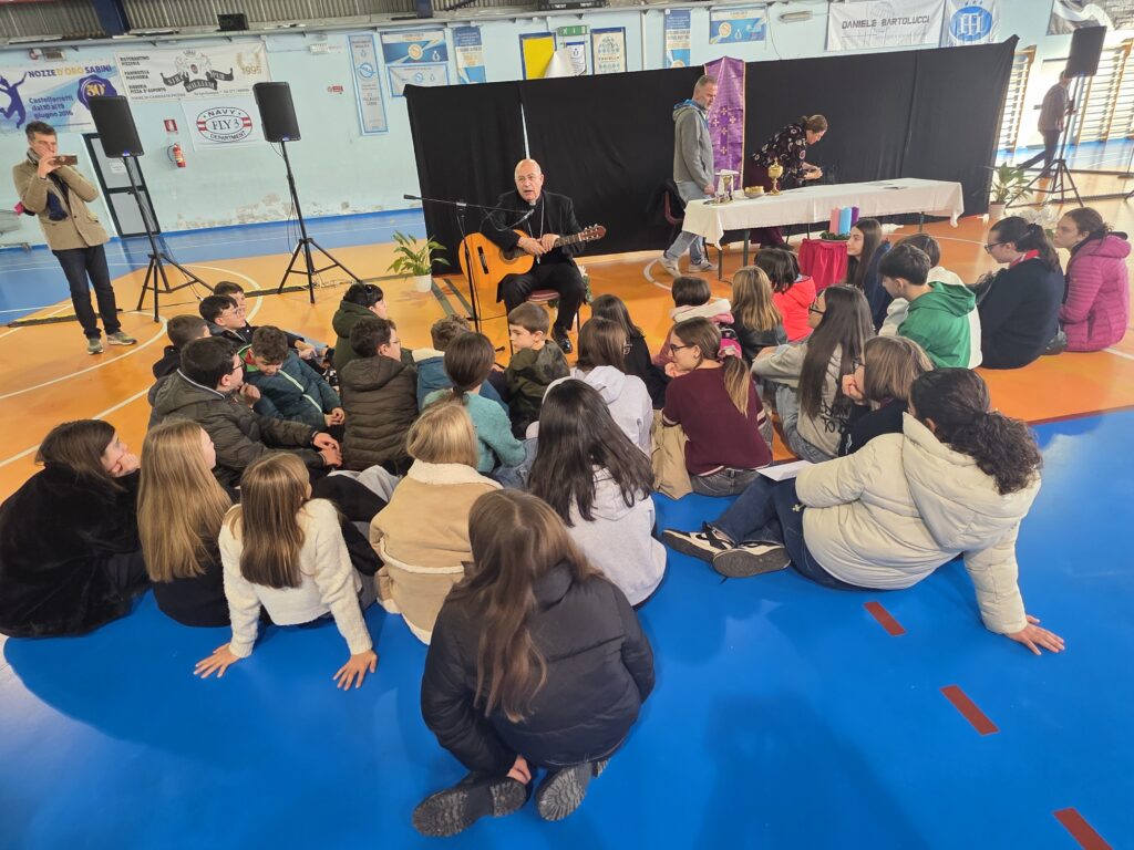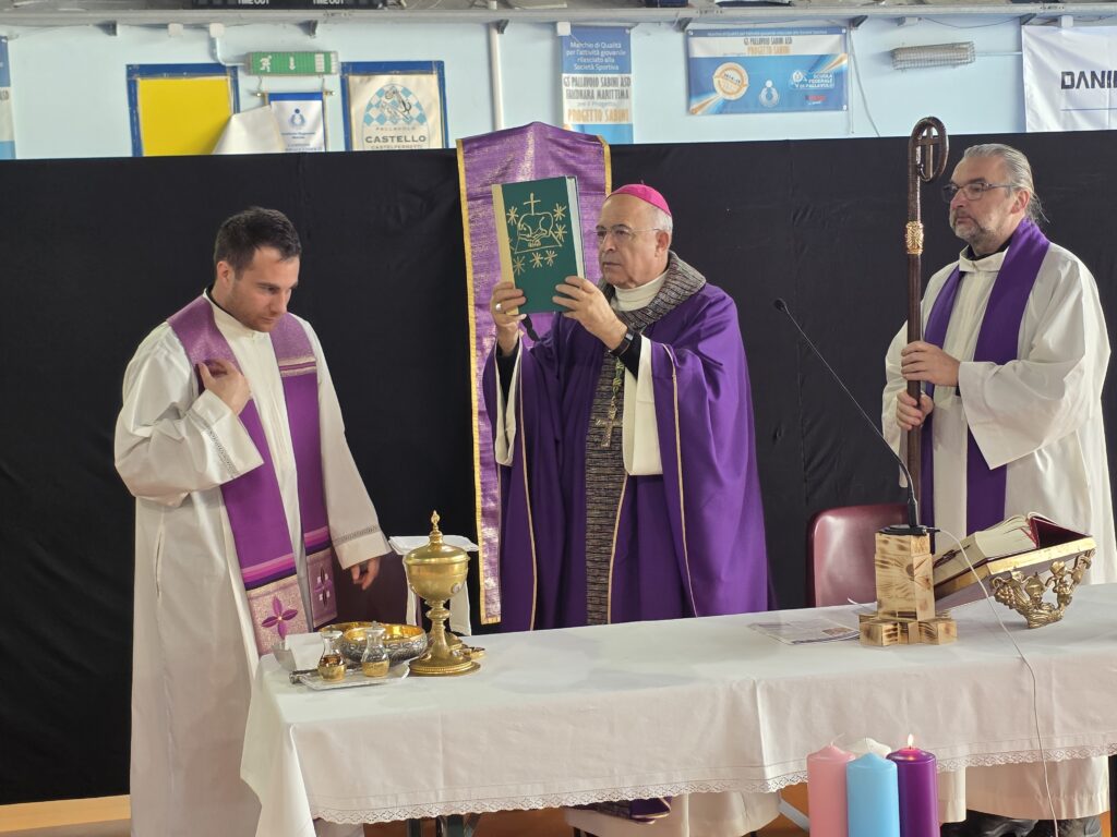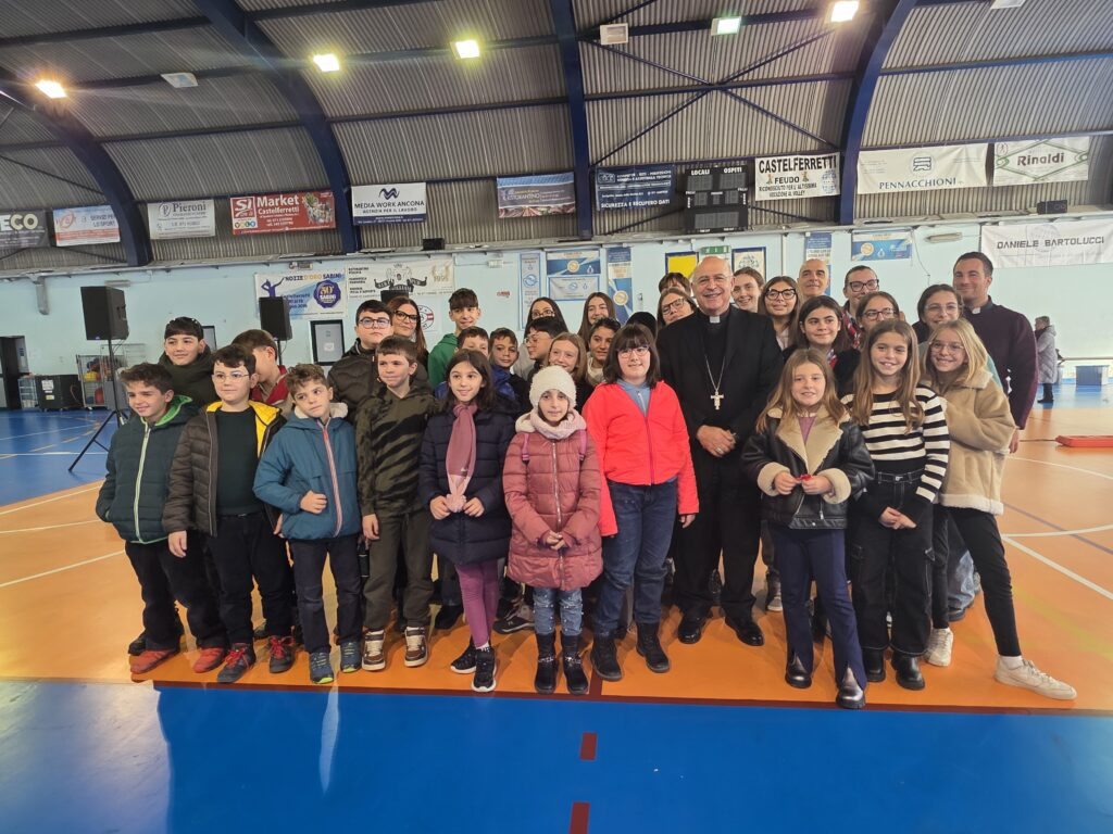 Si è conclusa con grande partecipazione e sincera gratitudine la visita pastorale a Castelferretti dell’Arcivescovo che, dal 23 al 30 novembre, ha incontrato la comunità parrocchiale, le realtà associative, le famiglie e gli anziani. Il momento finale, particolarmente sentito, è stato la Santa Messa animata dalla Banda musicale di Castelferretti, celebrata al PalaLiuti per permettere a tutti di partecipare. Tantissime persone hanno preso parte alla celebrazione: i membri dei gruppi parrocchiali, gli scout, i ragazzi del catechismo e dell’Azione Cattolica. Accanto a loro, i rappresentanti delle realtà associative del territorio, il sindaco Stefania Signorini, la vicesindaco Valentina Barchiesi e l’assessore Marco Giacanella.