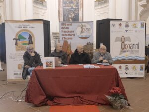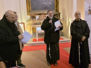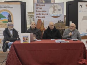 Dopo il taglio del nastro, l’inaugurazione è stata arricchita da un intermezzo musicale a cura del Mirò Saxophone Quartet, composto da Doria Del Maestro, Filippo Dionigi, Angelo Antonioli e Sabrina Esposto. L’incontro si è poi concluso con la presentazione del libro “Il Natale di Francesco”, scritto da Mons. Angelo Spina e dal giornalista Diego Mecenero, un volume che approfondisce il significato spirituale e umano del Natale secondo la tradizione francescana. Accanto a loro, il giornalista Claudio Sargenti che ha realizzato dei video di approfondimento accessibili tramite QR code all’interno del libro, e Padre Ferdinando Campana, autore di una sezione dedicata a dieci opere natalizie francescane marchigiane.