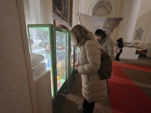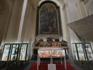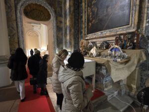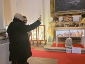 Mons. Angelo Spina ha sottolineato che «in questa chiesa del ‘600, eretta dai Gesuiti che affidarono a Luigi Vanvitelli il progetto di ampliamento e ristrutturazione, è esposta una mostra sulla Bibbia, il libro più tradotto al mondo, con documenti antichi originali, tra cui l’Evangeliario del VI sec. di San Marcellino, vescovo di Ancona. Ora si aggiunge anche la mostra dei presepi, che rappresenta un valore culturale e spirituale per la città. Ad Ancona sbarcano con le crociere tanti turisti ed è bello se qui possono trovare un messaggio spirituale, attraverso la via della cultura e della bellezza».