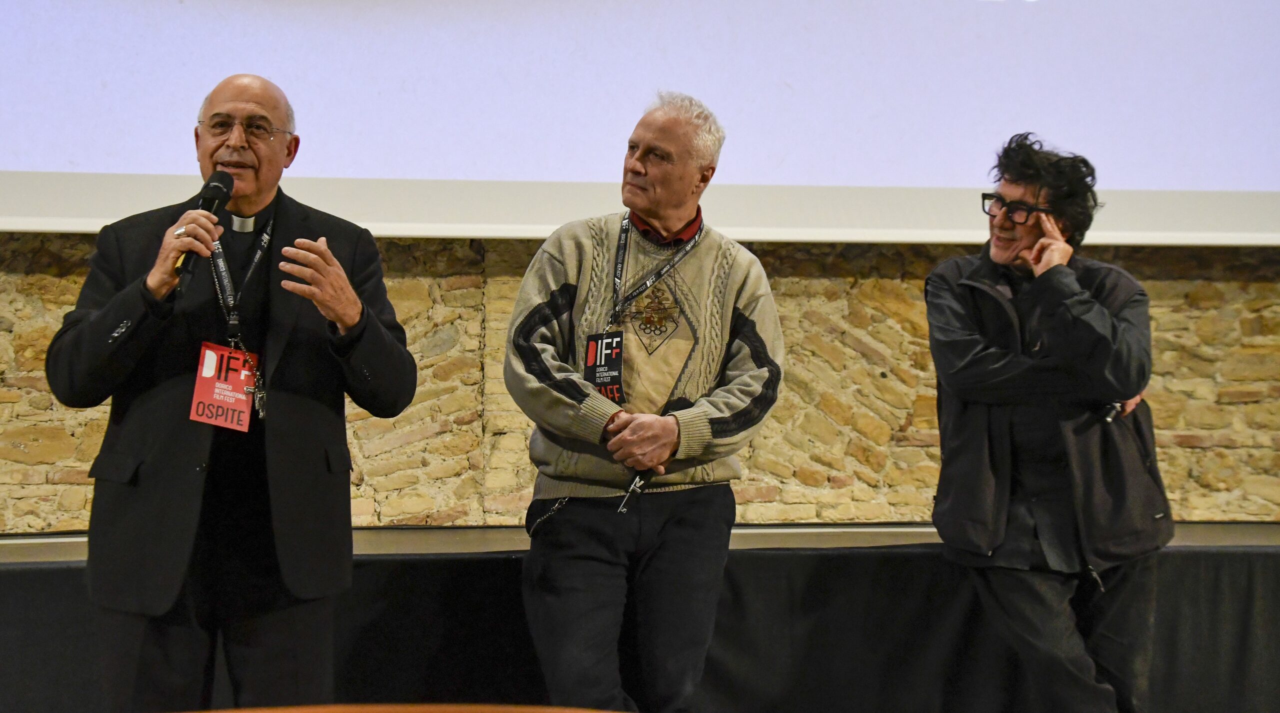 Presente alla proiezione, introdotta dal direttore artistico del DIFF Luca Caprara e seguita dal dibattito guidato dal direttore dell’Ufficio Cultura diocesano Fabio Sandroni, anche Mons. Angelo Spina che è intervenuto per complimentarsi con il regista Ciprì e ringraziarlo per la preziosa occasione di riflessione su una tematica così importante. Il suo intervento si è soffermato in particolare sul motivo della “porta”, immagine ricorrente e insistita, che rafforza l’idea centrale dell’opera, sintetizzata nel titolo Pontifex: l’esistenza di un passaggio, una porta, un “ponte” possibile tra il mondo, con il suo carico di domande e di complessità dolorose, e la speranza accogliente e misericordiosa, salvezza da custodire tra le pieghe della vita.