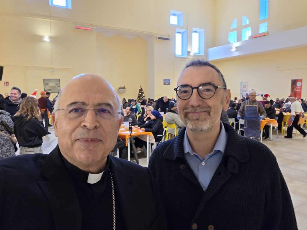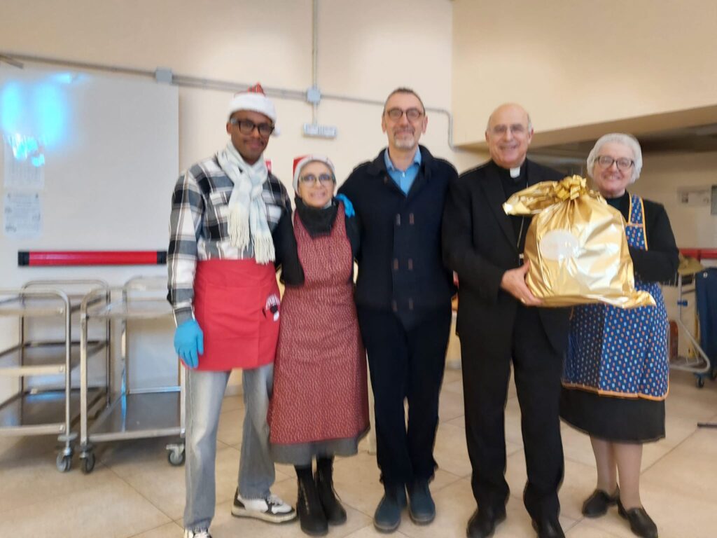 La mensa Caritas è aperta tutti i giorni accogliendo chi è in difficoltà e a Natale ha voluto far sentire ancor di più la sua vicinanza con un pranzo natalizio speciale. A mensa si è seduto anche l’arcivescovo consumando il pasto con i presenti a sottolineare la vicinanza a chi è più in difficoltà, a chi è povero e solo, a chi è anziano e sente il peso dell’isolamento, ai tanti che si sono trovati a dover chiedere aiuto, agli immigrati. A tutti è andato l’augurio di Buon Natale, condividendo alla fine il buon panettone e la tazzina di caffè. Una coppia di sposi ha rinunciato al pranzo di Natale da vivere  nella propria casa,  si è resa disponibile per servire alla mensa Catitas, ha detto: ”Siamo felici oggi di essere qui, sono i nostri amici, a loro regaliamo il Natale di pace, di serenità, perché nessuno si senta escluso dalla festa”.