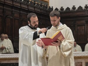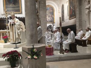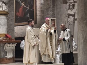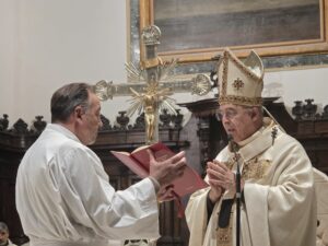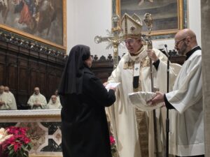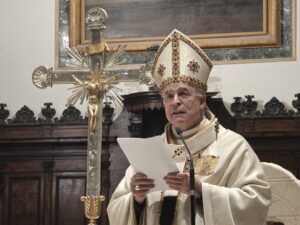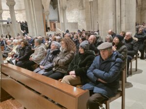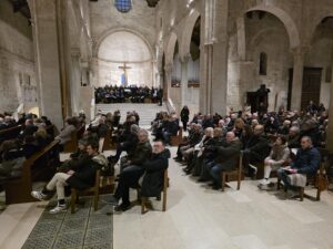 Al termine della celebrazione, l’Arcivescovo ha impartito la benedizione apostolica per l’indulgenza plenaria e ha consegnato la nuova lettera pastorale 2026-2027, dal titolo “La croce di Cristo, nostra unica speranza”. Comincia un tempo nuovo per i fedeli dell’Arcidiocesi, invitati a rivolgere lo sguardo alla Croce di Cristo. Nella lettera, consegnata a una rappresentanza di fedeli (un sacerdote, un diacono, una religiosa, un laico che si sta preparando al diaconato, una famiglia), Mons. Angelo Spina spiega che nel 2026 ricorrono 1700 anni dall’inventio crucis (326-327d.C.), dal ritrovamento della vera Croce di Cristo, come attestano autorevoli storici. Un frammento di quella Croce è conservato nella stauroteca collocata nella cripta dei santi patroni nella Cattedrale di San Ciriaco.