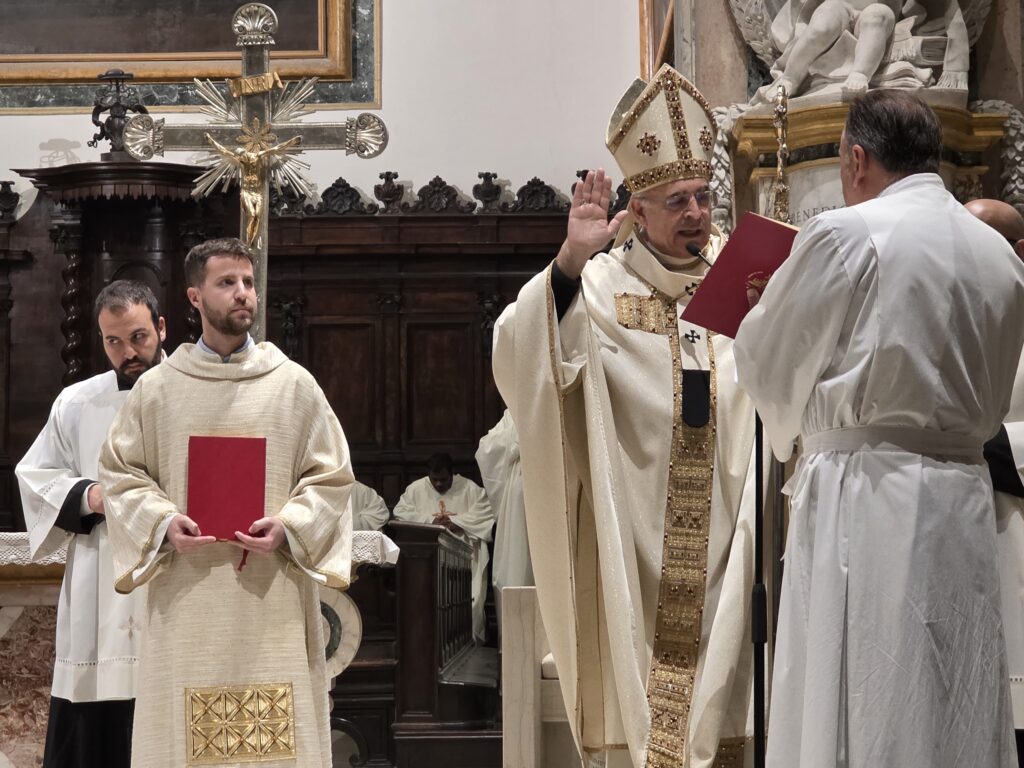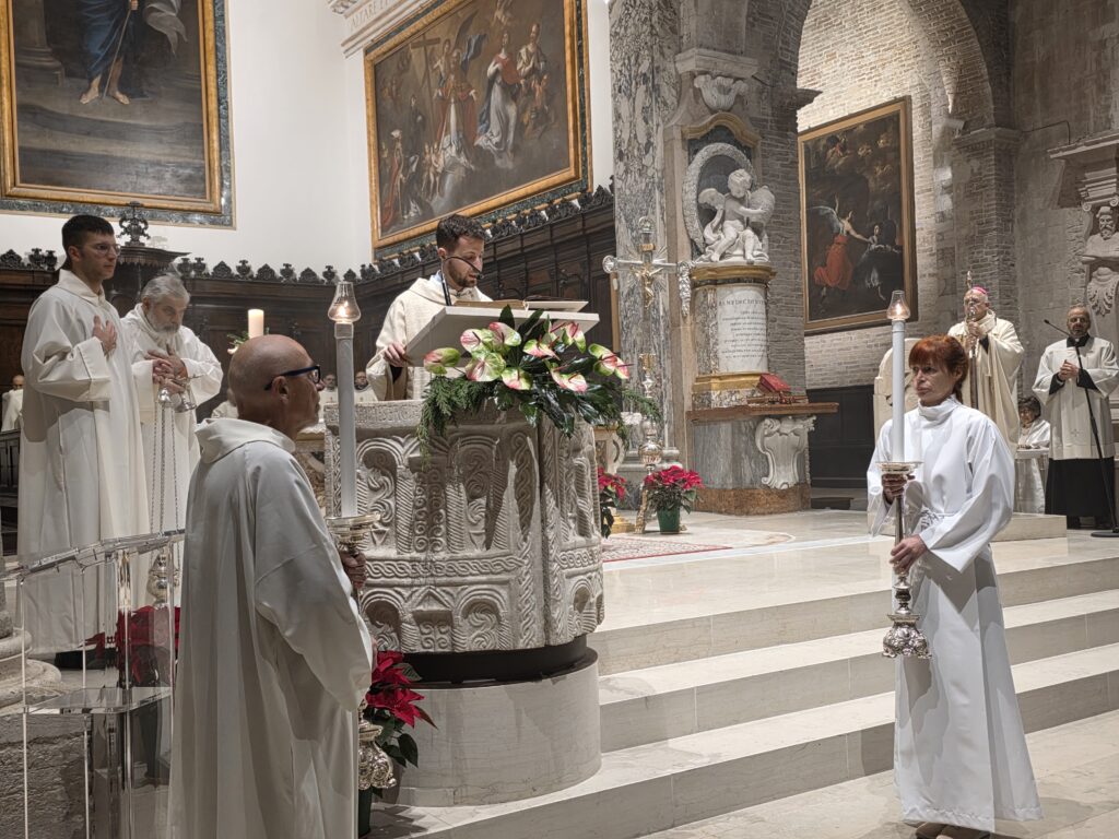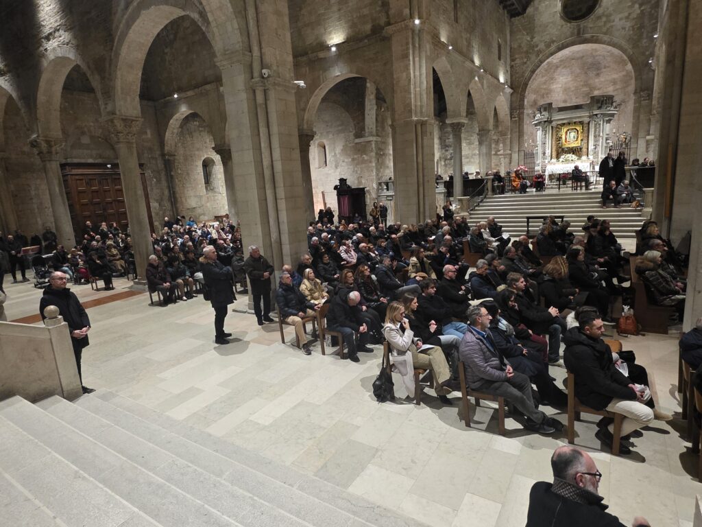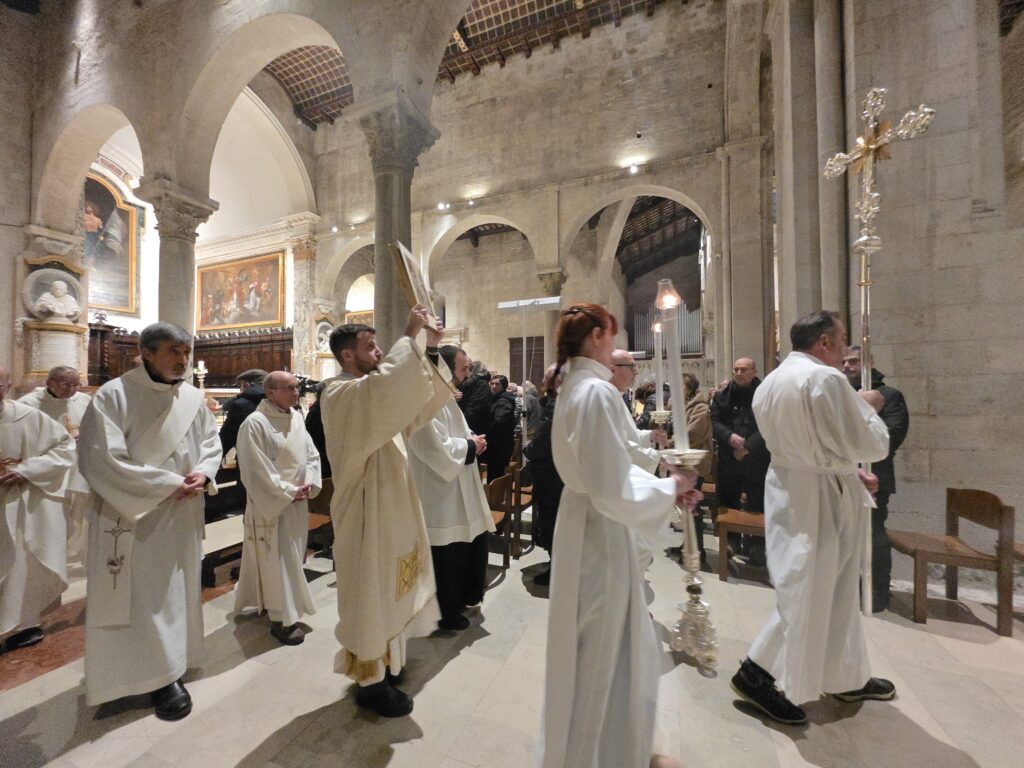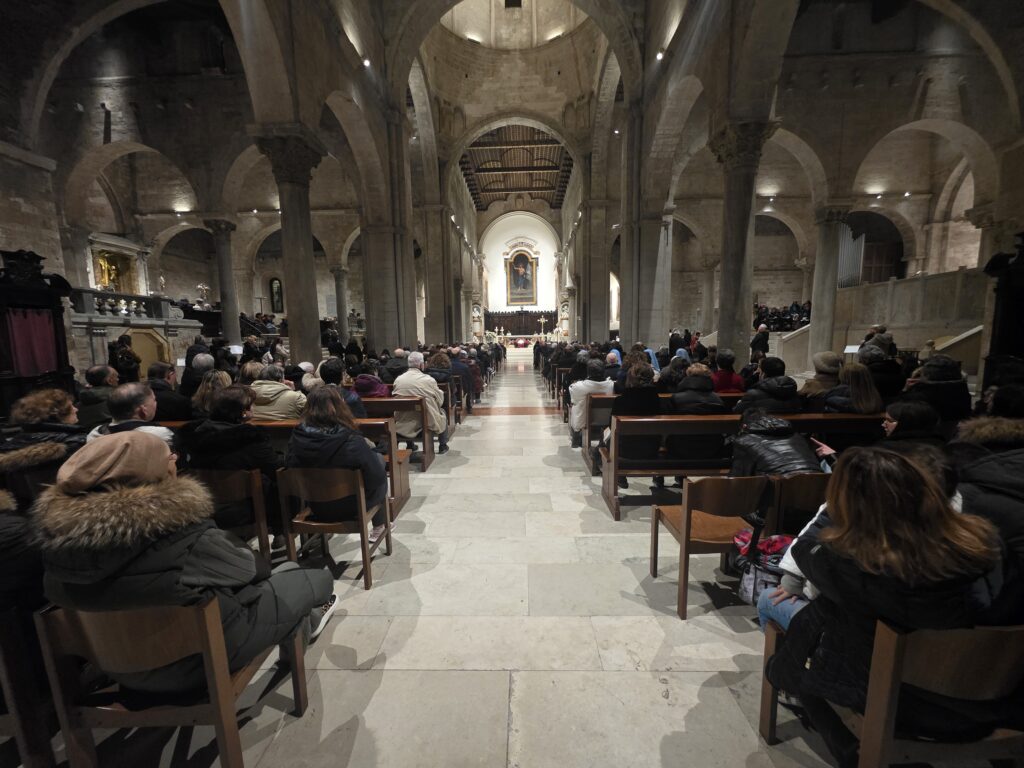 Al termine della celebrazione, l’Arcivescovo ha impartito la benedizione apostolica per l’indulgenza plenaria e ha consegnato la nuova lettera pastorale 2026-2027, dal titolo “La croce di Cristo, nostra unica speranza”. Comincia un tempo nuovo per i fedeli dell’Arcidiocesi, invitati a rivolgere lo sguardo alla Croce di Cristo. Nella lettera, consegnata a una rappresentanza di fedeli (un sacerdote, un diacono, una religiosa, un laico che si sta preparando al diaconato, una famiglia), Mons. Angelo Spina spiega che nel 2026 ricorrono 1700 anni dall’inventio crucis (326-327d.C.), dal ritrovamento della vera Croce di Cristo, come attestano autorevoli storici. Un frammento di quella Croce è conservato nella stauroteca collocata nella cripta dei santi patroni nella Cattedrale di San Ciriaco.