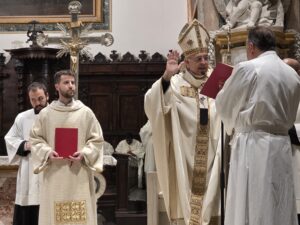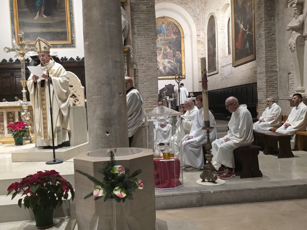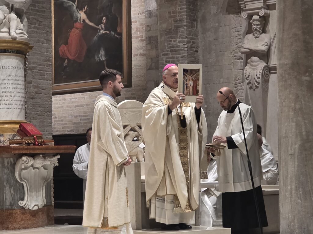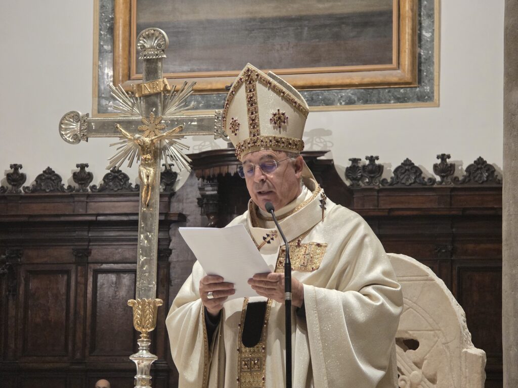 «Sin dall’inizio del mio ministero pastorale in questa Arcidiocesi, – ha spiegato – sono rimasto affascinato dalla figura di san Ciriaco, patrono dell’Arcidiocesi di Ancona-Osimo e della città di Ancona. Secondo le fonti e una consolidata Tradizione, fu lui, dietro richiesta di Elena, madre dell’imperatore Costantino, a indicare dove era la Croce di Cristo. Nel 2018 abbiamo celebrato un convegno internazionale su san Ciriaco che ha fornito dati interessanti. In seguito è stata avviata una nuova ricognizione del corpo del santo, iniziata nel novembre del 2023, che grazie alle moderne strumentazioni tecnologiche ha permesso di stabilire con certezza il periodo in cui è vissuto e ha fornito importanti indicazioni per individuare la sua provenienza geografica, il profilo biologico, l’alimentazione negli ultimi 5-10 anni di vita, le malattie e le fratture. I risultati scientifici, presentati il 30 aprile 2025, concordano sostanzialmente con quanto ricevuto dalla millenaria Tradizione. La vita del santo – che era un ebreo di nome Giuda, che si convertì facendosi battezzare prendendo il nome di Ciriaco (del Signore), e che divenne vescovo di Gerusalemme, subendo poi il martirio sotto l’imperatore Giuliano l’Apostata nel 363 – invita ciascuno di noi a fare un cammino verso la Croce: ritrovarla, abbracciarla e testimoniarla».
