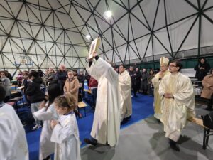 Nell’omelia, l’Arcivescovo ha invitato i fedeli a riflettere sul significato autentico della gioia, distinguendola dalla semplice felicità. Un bambino, ha ricordato, può essere felice quando riceve un regalo, ma vive nella vera gioia quando si sente amato. Ha quindi ringraziato Dio per il dono della vita e i genitori, «che ogni giorno si prendono cura di voi, perché la vostra vita possa essere bella, buona e beata, cioè piena di gioia». Richiamando il passo evangelico in cui Gesù prende un bambino e lo pone al centro, Mons. Angelo Spina ha ricordato che tutti siamo chiamati a diventare come i bambini: «Siamo chiamati a essere piccoli e a fidarci di Dio, come i bambini che sono semplici e in braccio ai genitori non hanno paura di niente. Dio non ci farà mai mancare nulla».