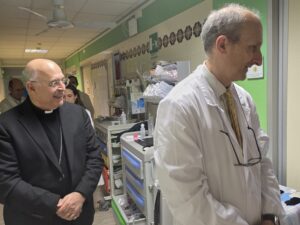 L’Arcivescovo ha infine sottolineato che «l’uomo ha bisogno di guarigione, ma anche di salvezza. Nei Vangeli leggiamo che Gesù dice: “La tua fede ti ha salvato”. La salvezza è dono di Dio per la nostra vita. Ringrazio i cappellani che confessano e portano la comunione, i ministri della comunione, l’Avulss, l’Unitalsi e i tanti volontari». Al termine della celebrazione, Mons. Angelo Spina ha visitato i reparti di Geriatria e Nefrodialisi, donando parole di conforto e speranza ai degenti, e ha benedetto i malati e gli operatori sanitari.