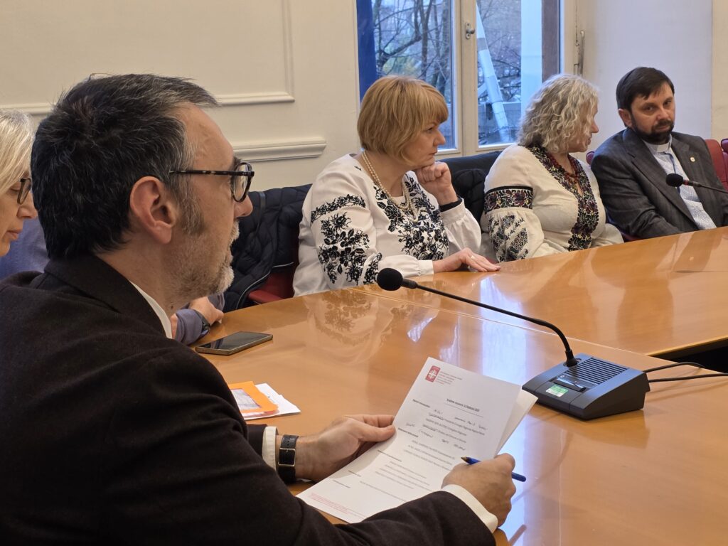 Mercoledì 11 febbraio la delegazione ha incontrato, presso il Centro Pastorale Diocesano di Ancona, Mons. Angelo Spina, Arcivescovo Metropolita di Ancona-Osimo, e la Consulta della Caritas di Ancona-Osimo, insieme al direttore Simone Breccia. Un momento di confronto, durante il quale sono stati presentati i servizi attivi nel territorio, dalla mensa per i poveri agli empori della solidarietà. Questa mattina, invece, presso la Sala Bastianelli del Consiglio regionale delle Marche si è tenuto l’incontro con la realtà marchigiana, civile ed ecclesiale, che ha espresso la sua vicinanza al popolo ucraino. Dopo i saluti di Simone Breccia, del Consigliere Segretario dell’Ufficio di Presidenza Marco Ausili, e del consigliere regionale Massimo Seri (AICCRE), Mons. Gianpiero Palmieri, Vice Presidente della CEI per l’area Centro e Vescovo delegato per la carità e il lavoro, ha sottolineato che «in questi anni difficili, il popolo ucraino ha sperimentato la vostra vicinanza. Tutto ciò che la Caritas delle Marche ha fatto, dall’invasione russa del 24 febbraio 2022 fino a oggi, è un grande segno di amicizia e solidarietà». Mons. Angelo Spina ha sottolineato la vicinanza della Chiesa di Ancona-Osimo all’Ucraina: «Abbiamo sostenuto per due anni tante famiglie ucraine, con vitto, alloggio e assistenza sanitaria, e continuiamo a pregare per la pace. Senza fraternità non c’è futuro».