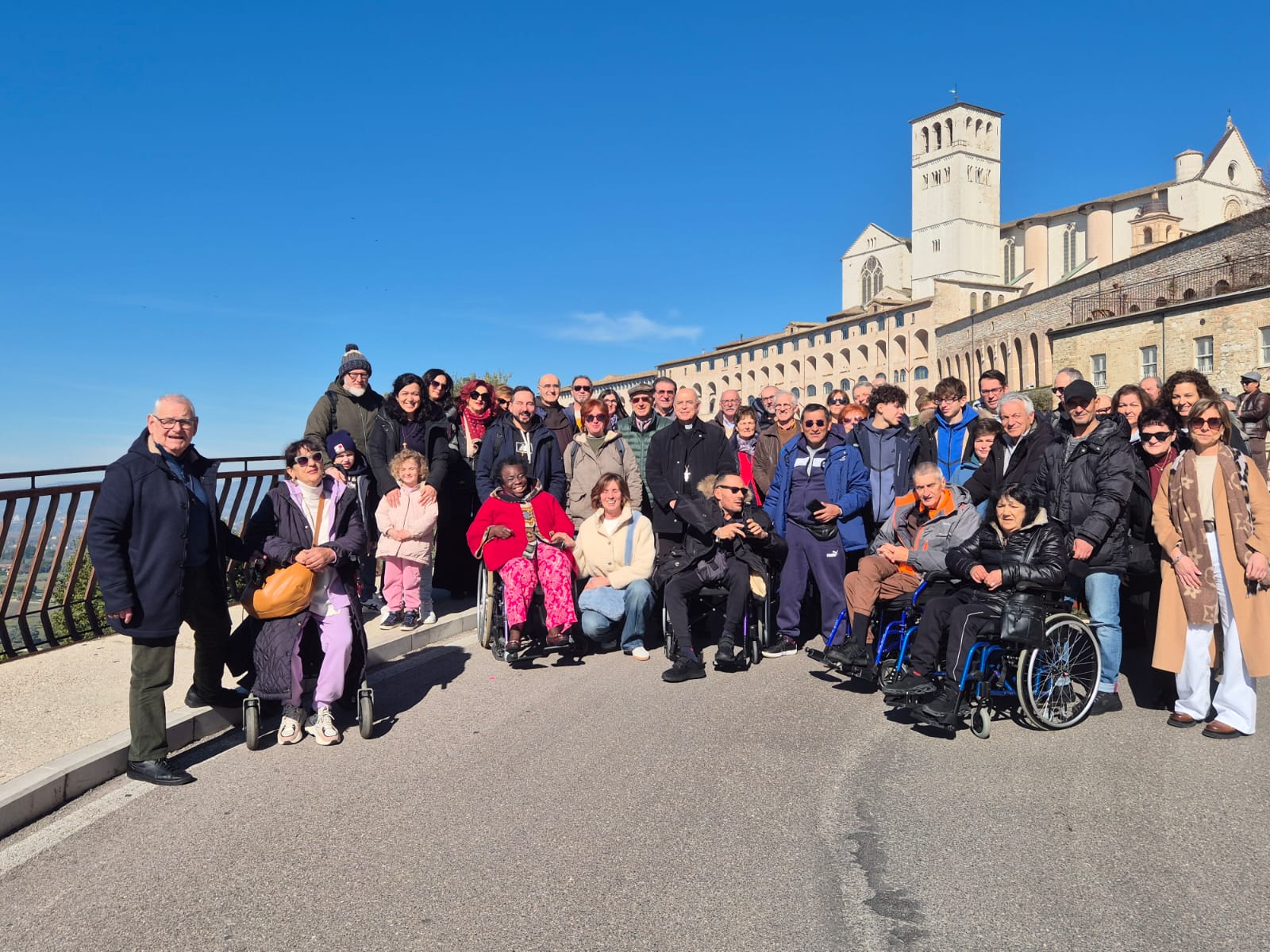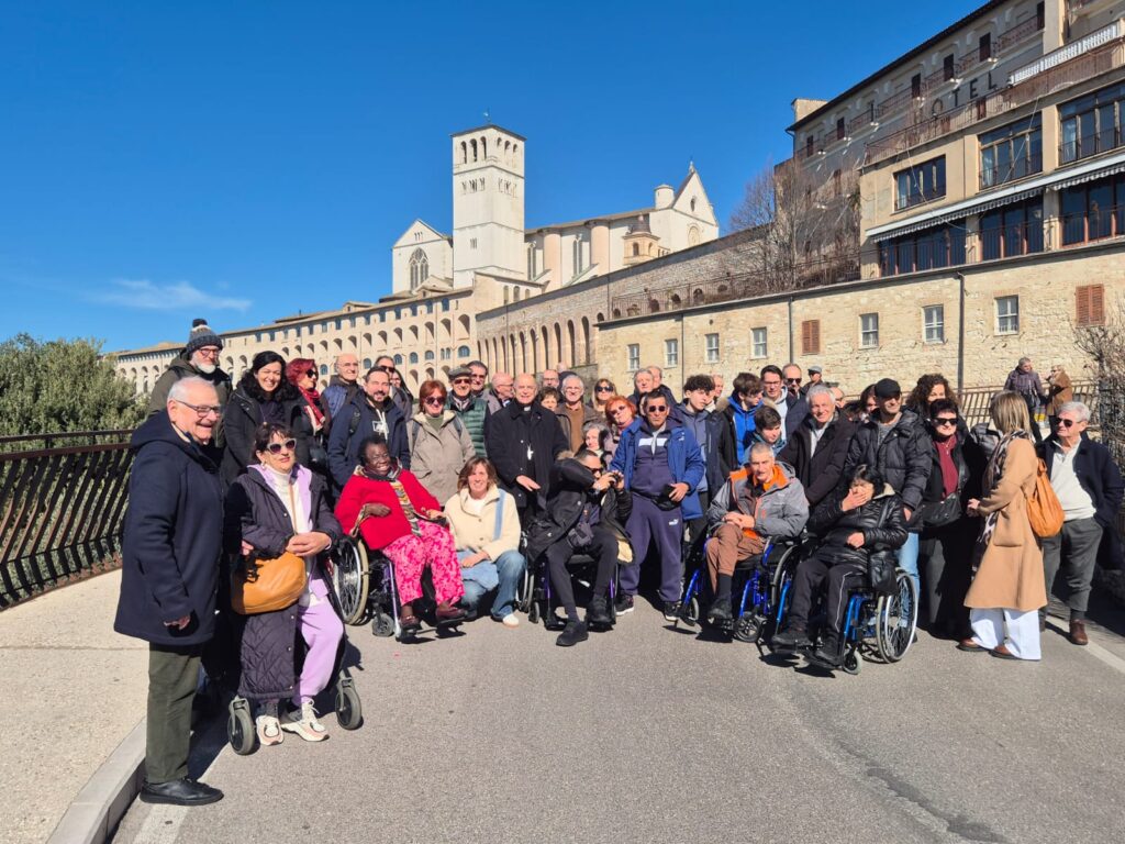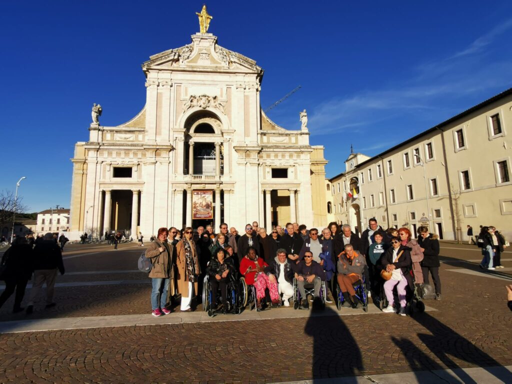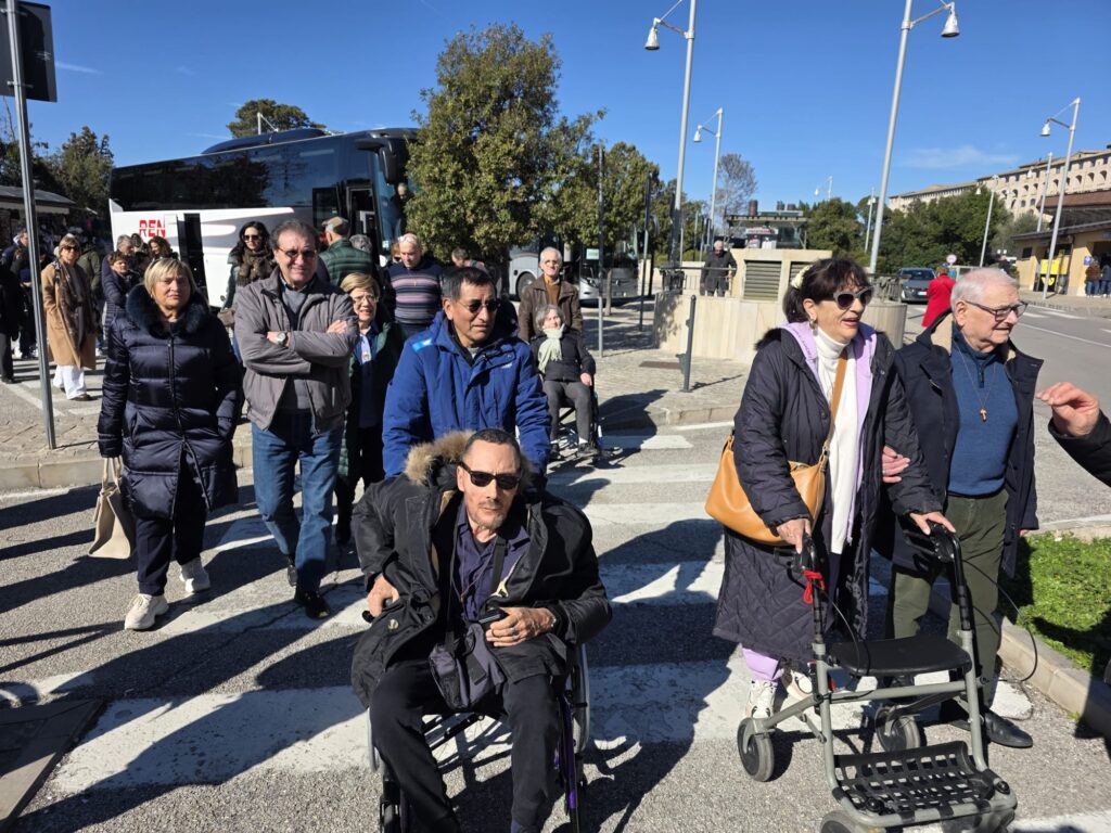 I monti sibillini imbiancati di neve e una giornata luminosa hanno dato il buongiorno agli ospiti della casa il Focolare per iniziare il pellegrinaggio ad Assisi, per venerare le sacre spoglie di San Francesco. Al pellegrinaggio, guidato dalla sapiente regia di Luca Saracino, si sono uniti oltre agli ospiti della Casa il Focolare, gli operatori, i volontari e amici che hanno voluto condividere una giornata insieme. Hanno preso parte al pellegrinaggio anche Padre Alvaro Romanelli e l’arcivescovo Angelo che ha salutato tutti i presenti e invitato a pregare, ha, poi, benedetto le croci tau distribuite ai pellegrini.