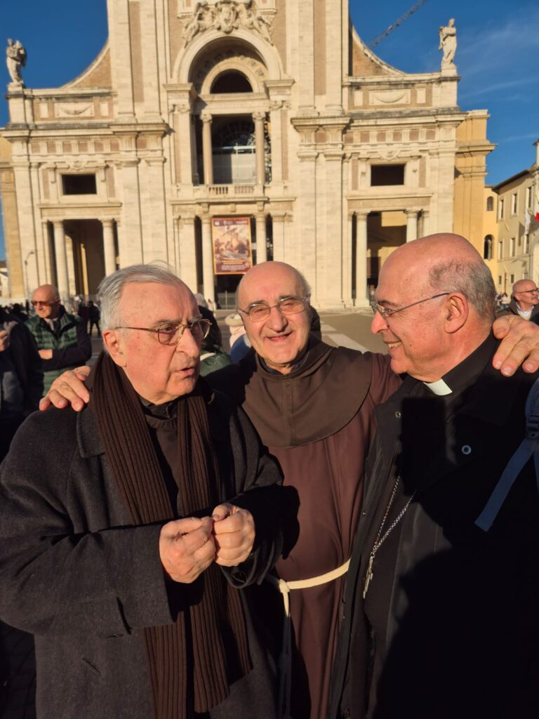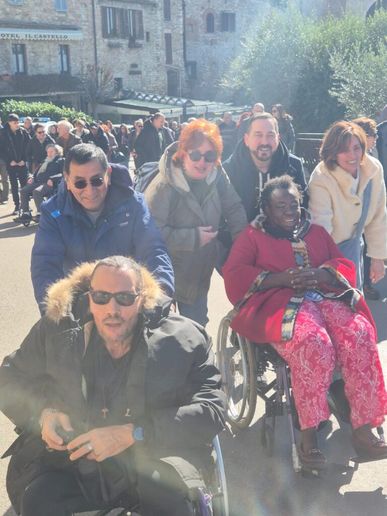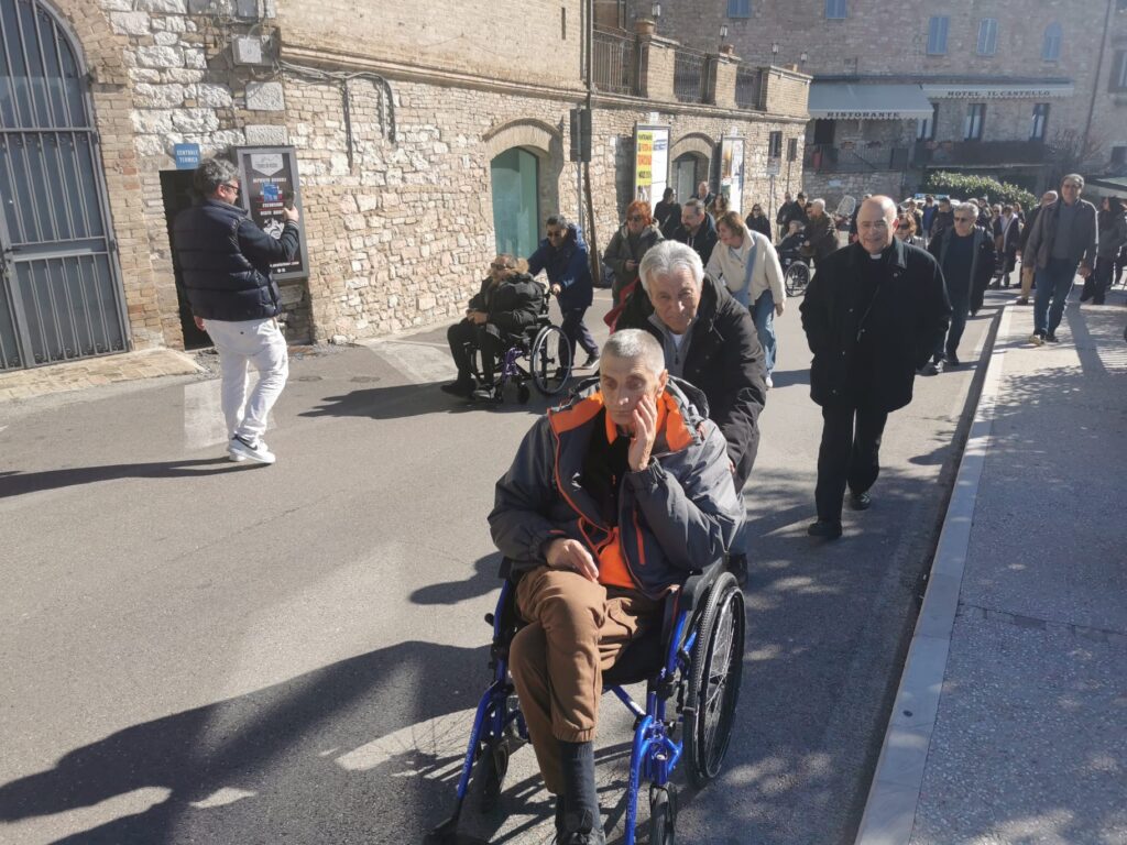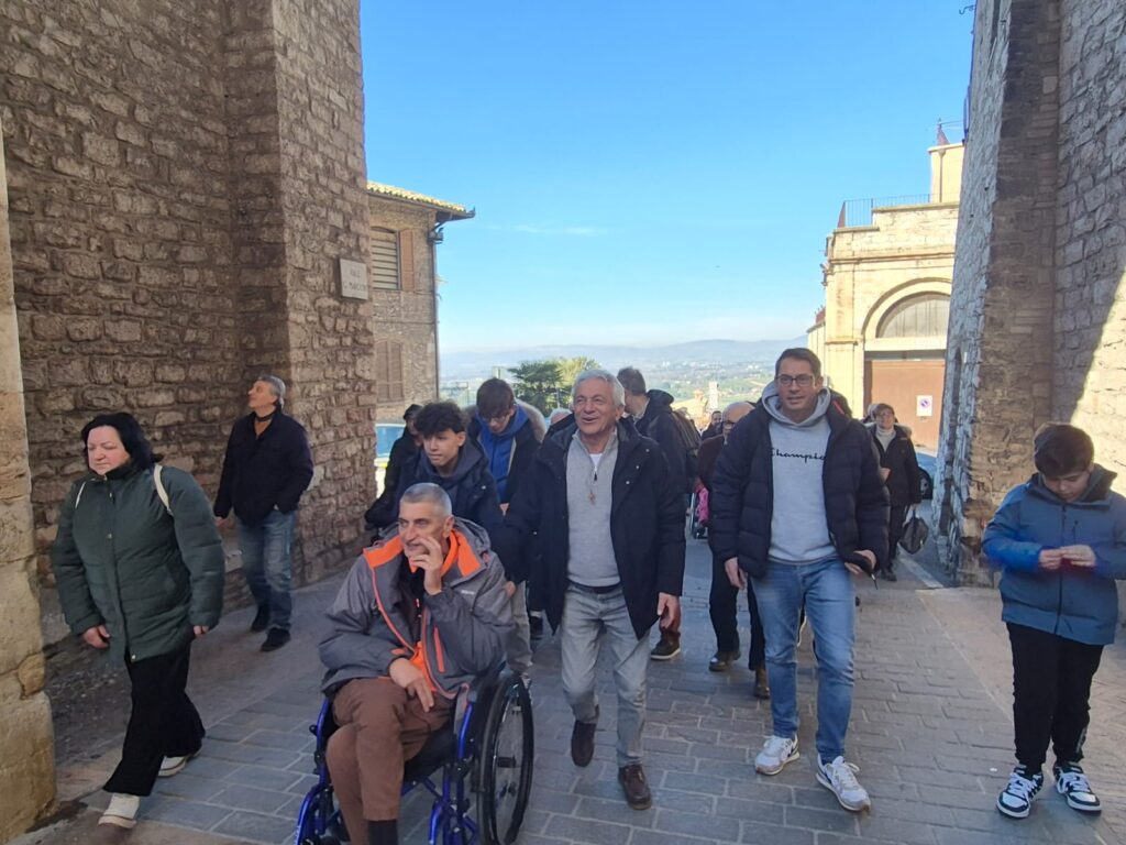 I monti sibillini imbiancati di neve e una giornata luminosa hanno dato il buongiorno agli ospiti della casa il Focolare per iniziare il pellegrinaggio ad Assisi, per venerare le sacre spoglie di San Francesco. Al pellegrinaggio, guidato dalla sapiente regia di Luca Saracino, si sono uniti oltre agli ospiti della Casa il Focolare, gli operatori, i volontari e amici che hanno voluto condividere una giornata insieme. Hanno preso parte al pellegrinaggio anche Padre Alvaro Romanelli e l’arcivescovo Angelo che ha salutato tutti i presenti e invitato a pregare, ha, poi, benedetto le croci tau distribuite ai pellegrini.